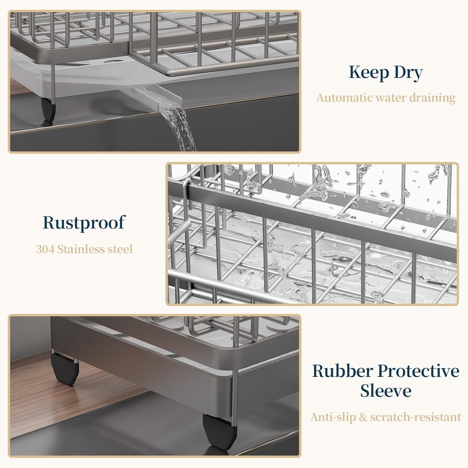 - [Dual Brush Stand Feature]: Built-in brush holder supports both long and short brushes vertically, saving space while keeping your tools accessible. This convenient sink sponge caddy design adapts to multiple brush sizes, ensuring no item is left out. Make your cleaning routine efficient and stylish with this multipurpose organization and storage upgrade for modern kitchens
