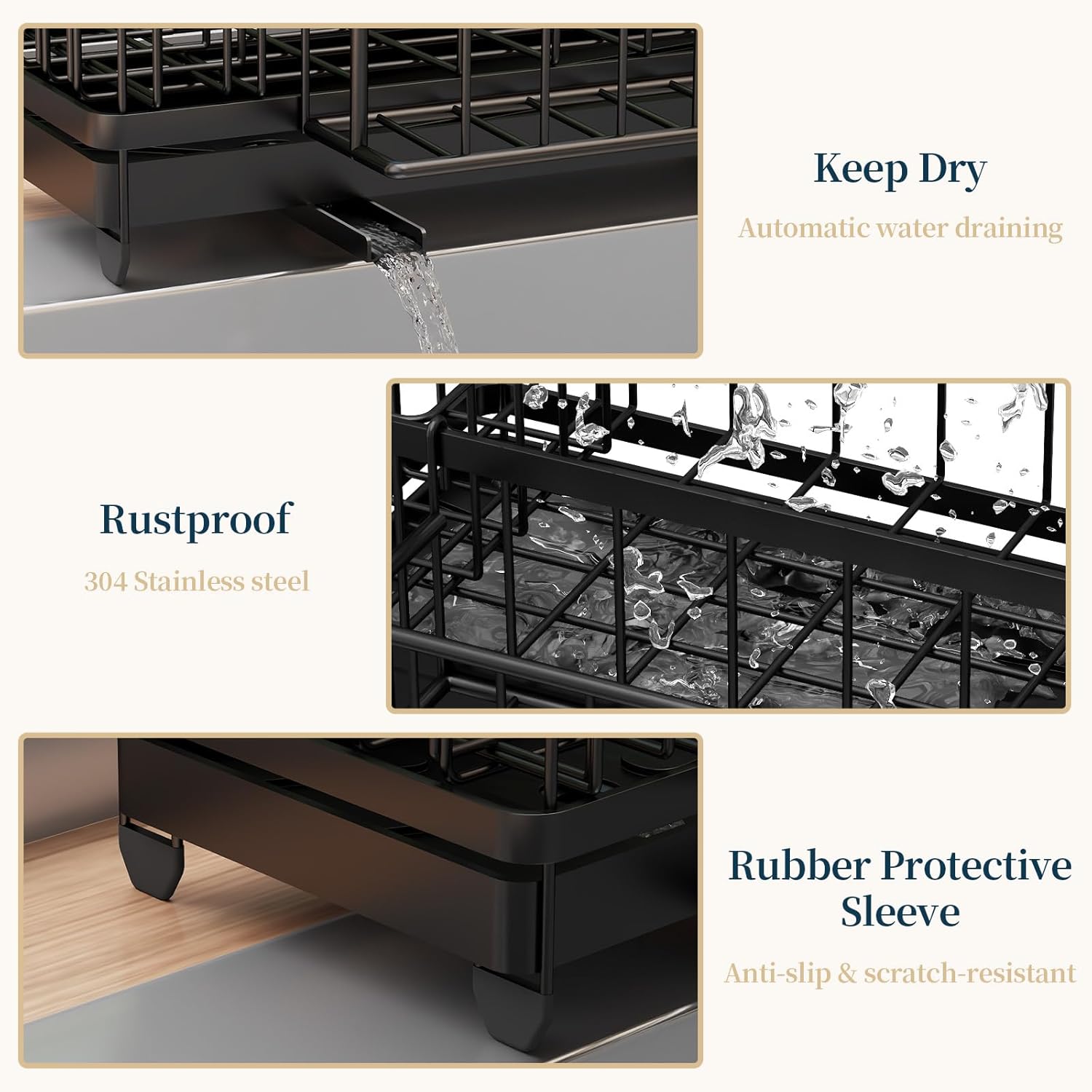 - [Dual Brush Stand Feature]: Built-in brush holder supports both long and short brushes vertically, saving space while keeping your tools accessible. This convenient sink sponge caddy design adapts to multiple brush sizes, ensuring no item is left out. Make your cleaning routine efficient and stylish with this multipurpose organization and storage upgrade for modern kitchens.