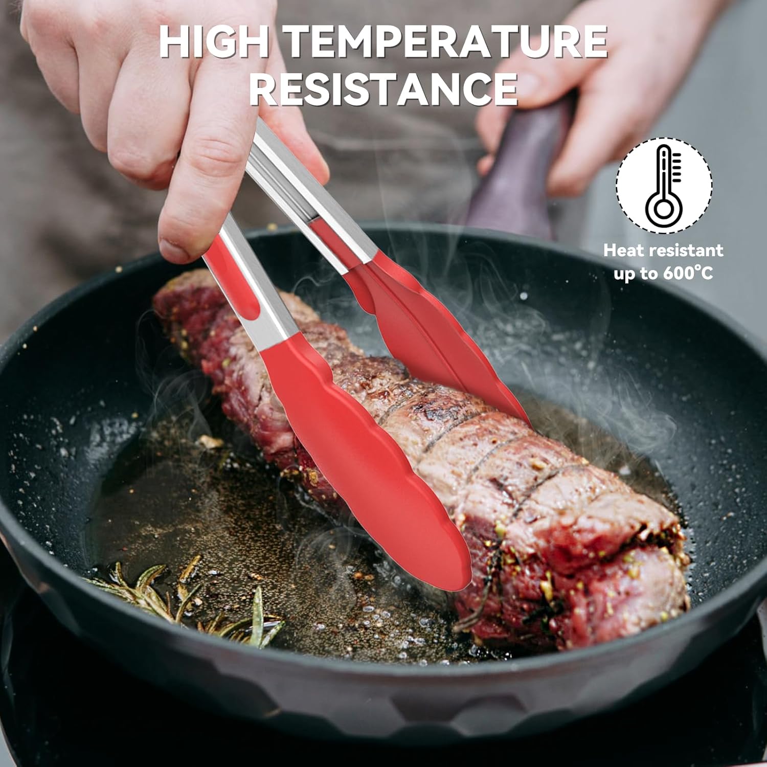 NileHome Tongs for Cooking, Professional Stainless Steel Cooking Tongs – Heat-Resistant for Grilling, BBQ, Serving Salad, Pasta, and Kitchen Use, Dishwasher Safe, Set of 7" 9" 12", Red