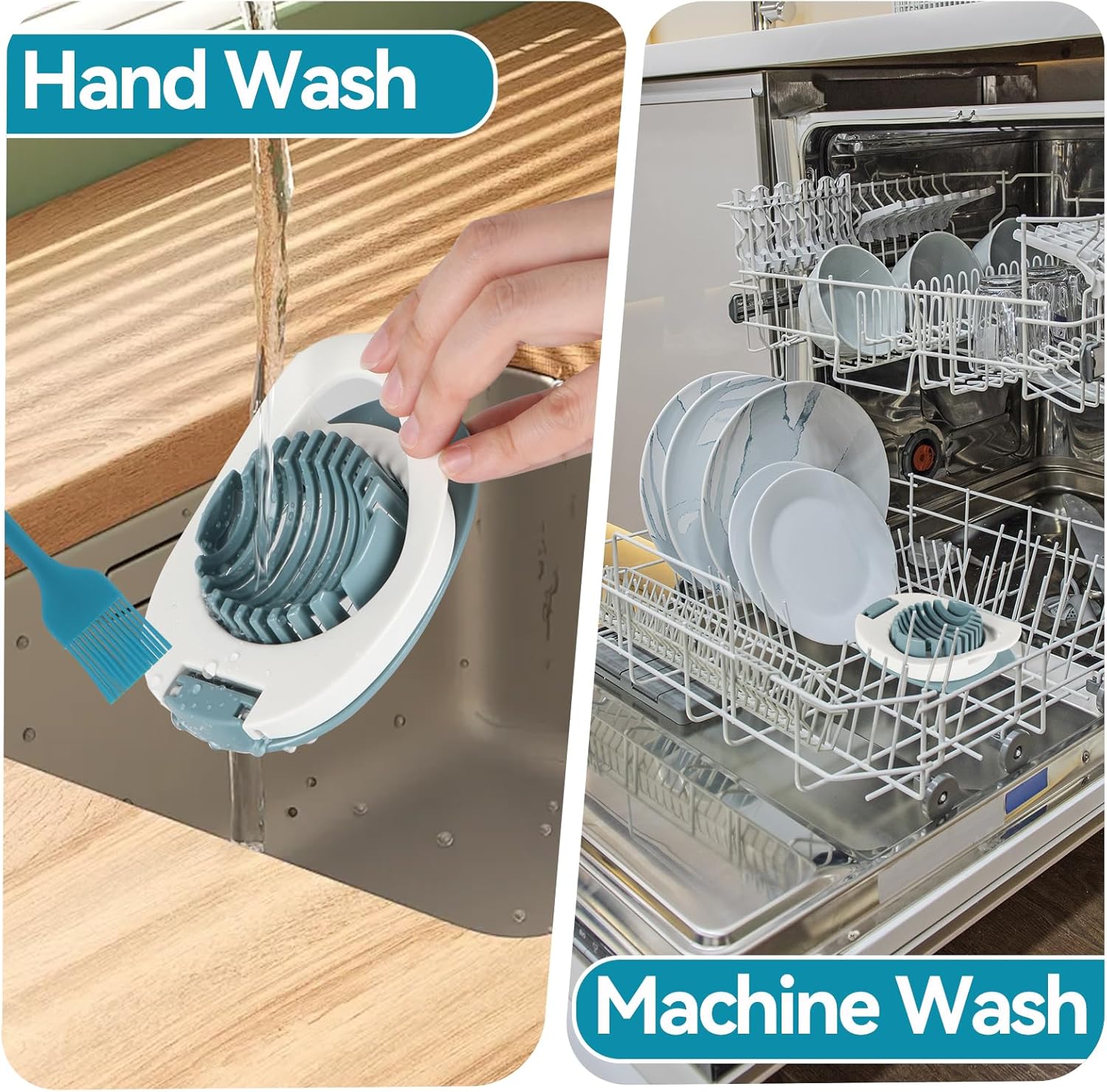 - ăHassle-Free CleaningăYou can toss it in the dishwasher for quick convenience, or just rinse it under running water. For extended durability, we recommend handwashing. With its easy-to-clean design, maintaining this slicer is straightforward