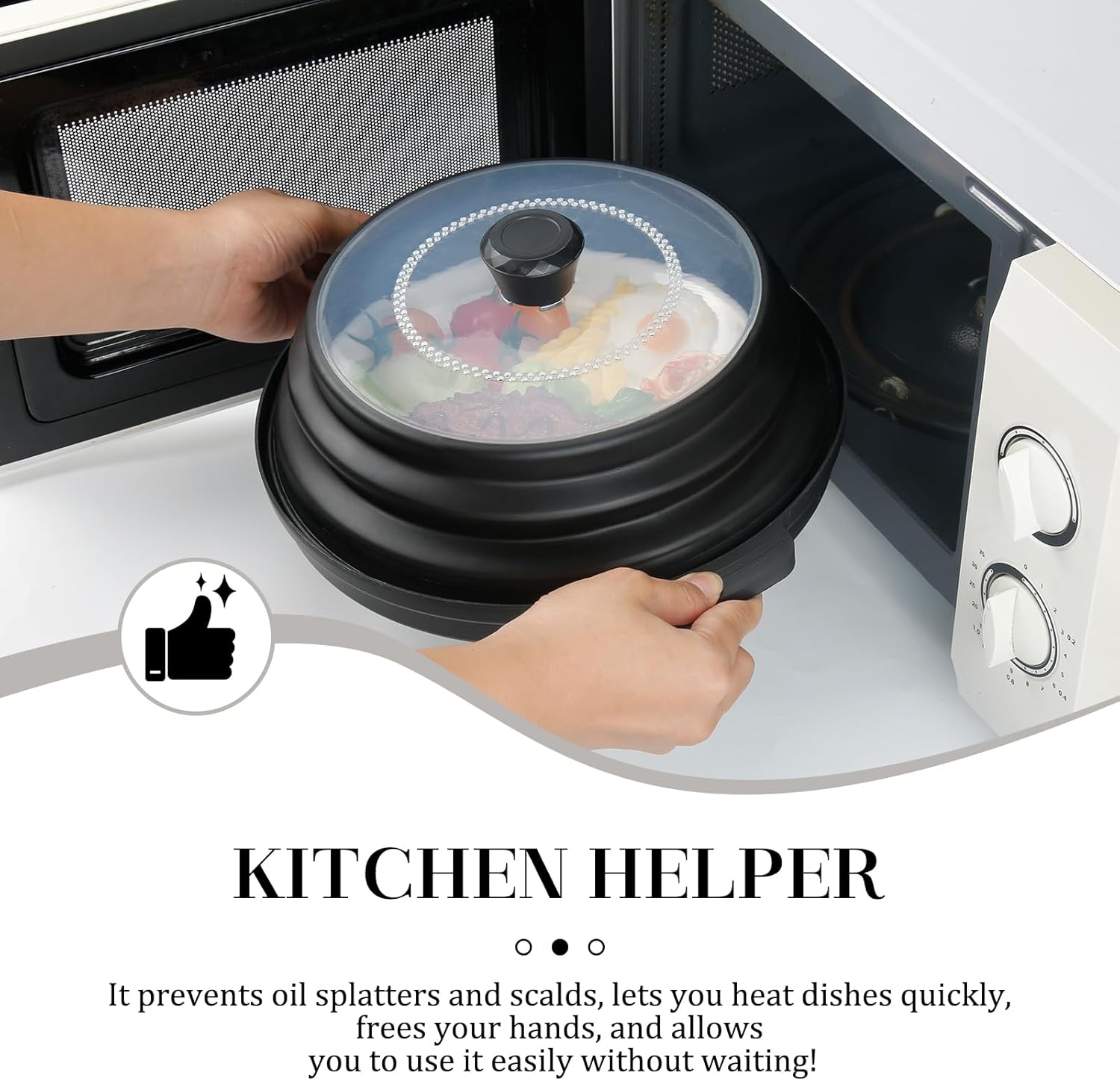 - 【EASY TO STORE】:The microwave splatter cover has a diameter of 10.7 inches,and its height can be freely adjusted between 1 to 3.2 inches.It can be directly cleaned in the dishwasher,and its foldable design saves storage space