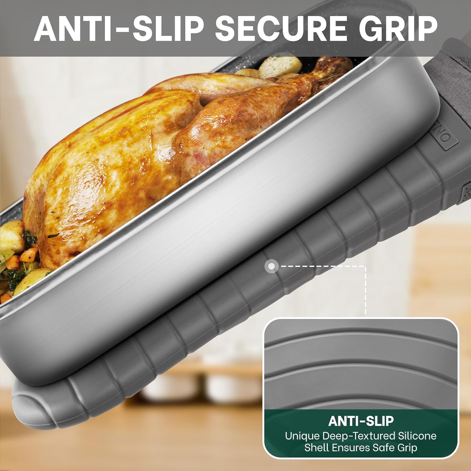 - Superior Heat Resistant & Waterproof: Crafted with high-quality BPA-free soft silicone, these oven mitts provides superior heat resistant up to 500°F with reliable waterproof shell for repels heat, steam and hot liquid, ensuring safely handling hot baking sheets, grill pans, and cookware straight from the oven or stovetop, no more burn risk of hot liquids, gravies or sauces