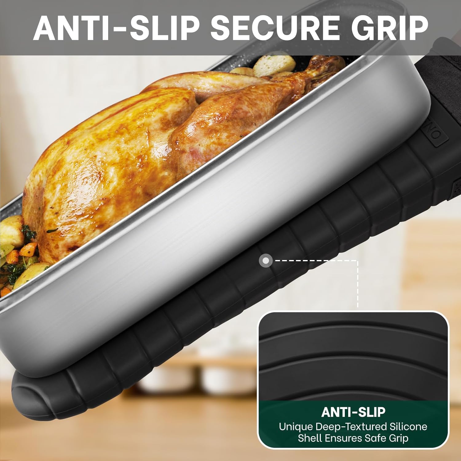 - Superior Heat Resistant & Waterproof: Crafted with high-quality BPA-free soft silicone, these oven mitts provides superior heat resistant up to 500°F with reliable waterproof shell for repels heat, steam and hot liquid, ensuring safely handling hot baking sheets, grill pans, and cookware straight from the oven or stovetop, no more burn risk of hot liquids, gravies or sauces