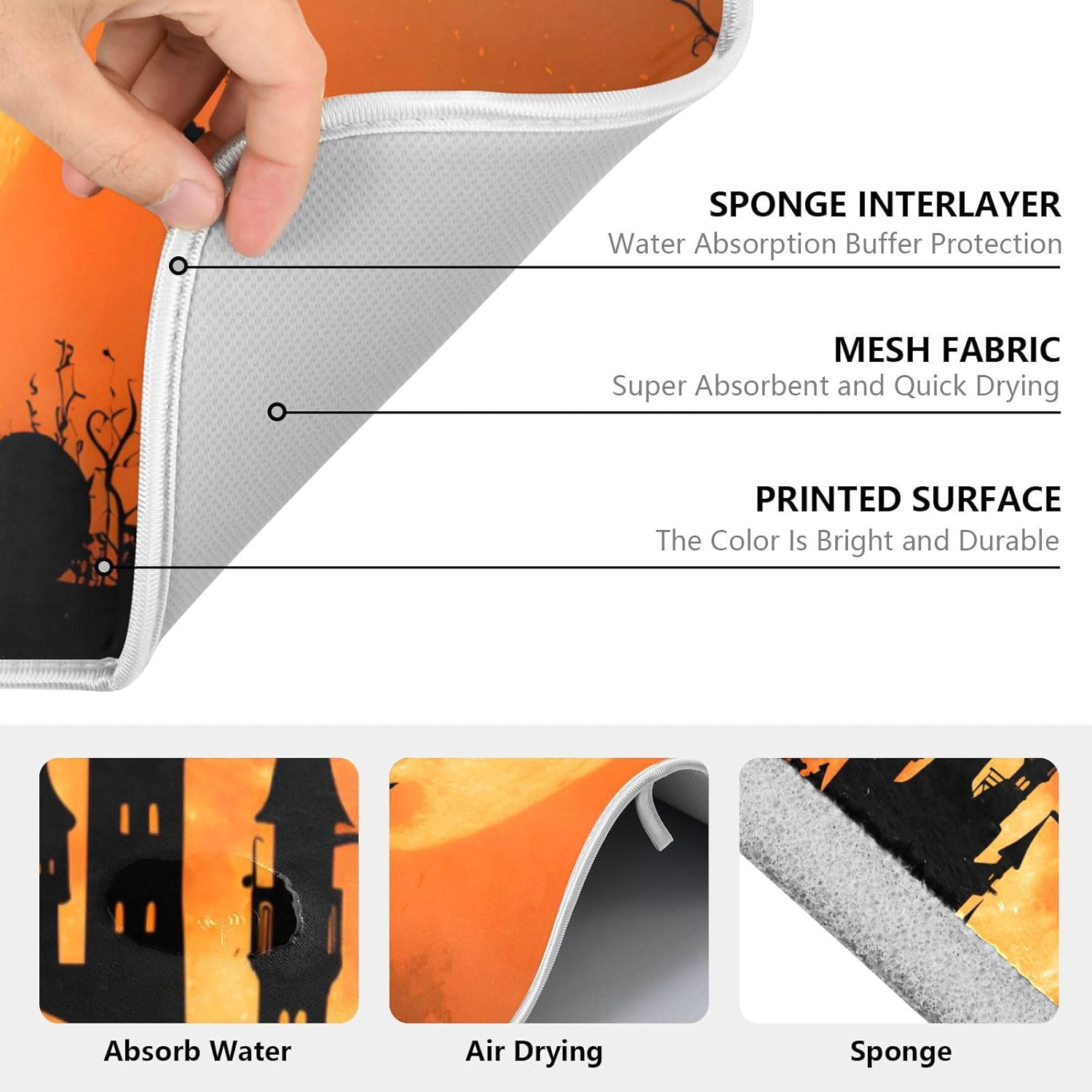 Halloween Witch Bat Castle Pumpkin Dish Drying Mat for Kitchen Counter Absorbent Microfiber Large Drying Pad Dish mats for Kitchen Countertops 18 x 24 Inch