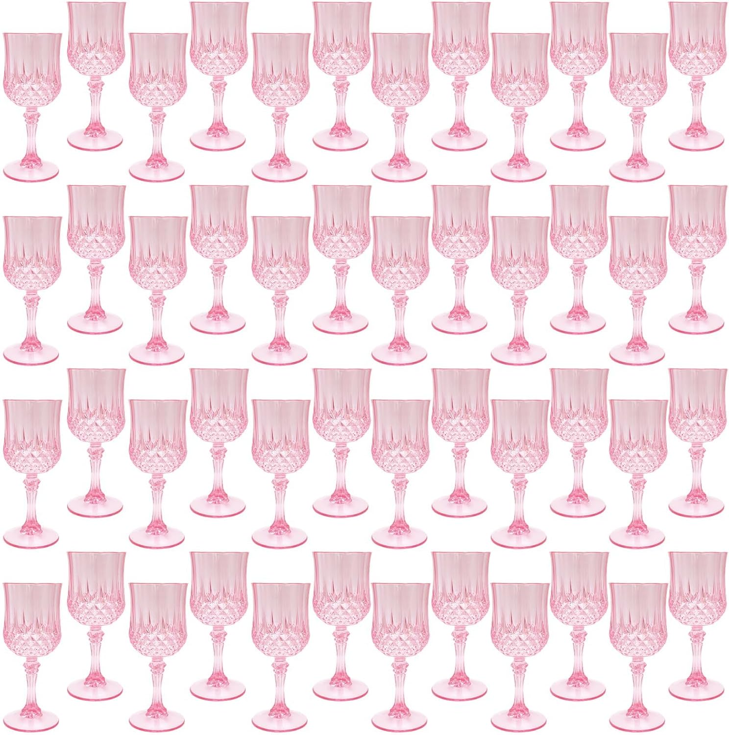 Plastic Wine Glasses,Plastic Goblets Vintage Style Cordial Drinking Glasses for Wedding Reception, Grand Event Party Supplies (100, Pink)