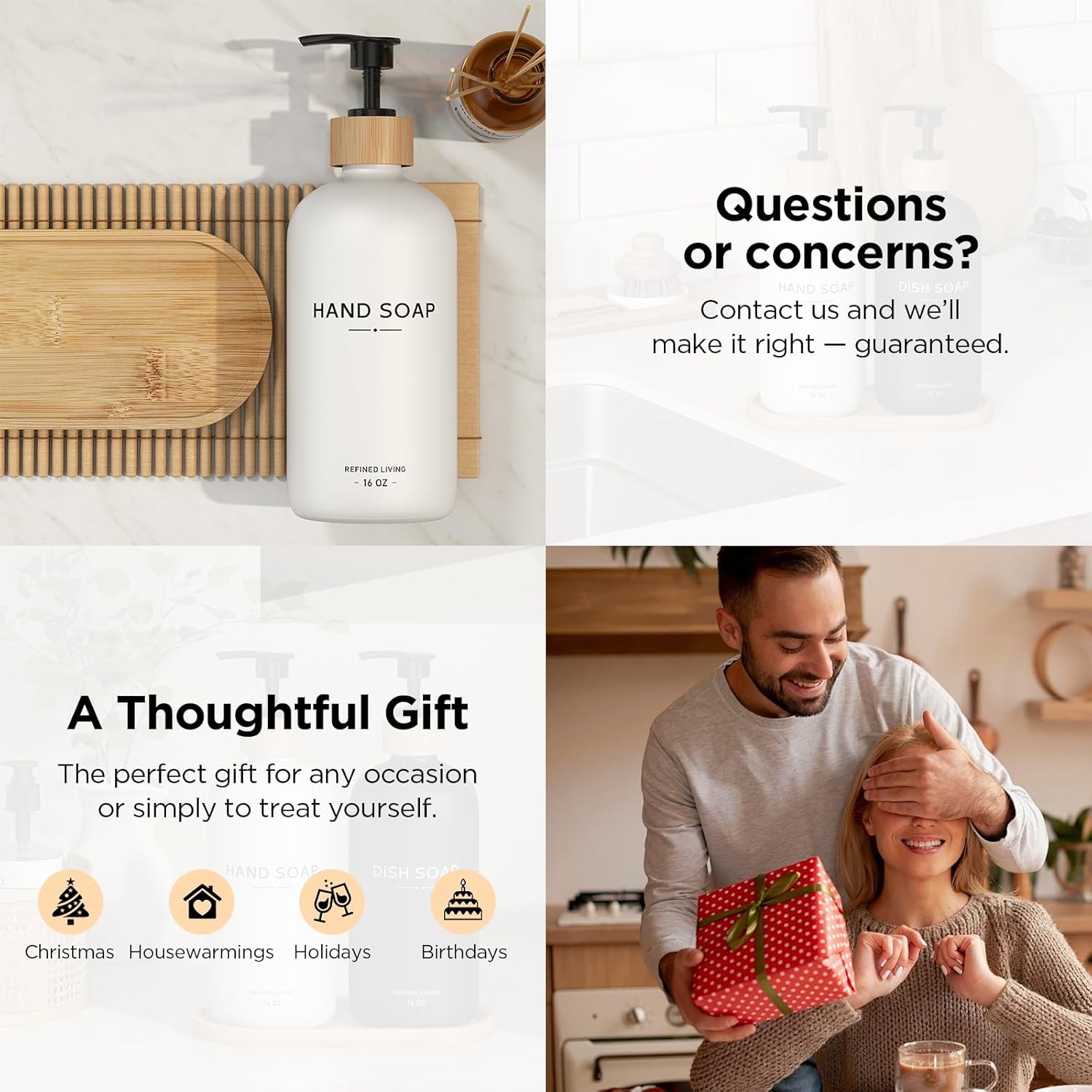 - 【FITS ANY DECOR】 – From luxury and farmhouse to modern minimalist, this elegant hand soap dispenser set blends effortlessly with your kitchen or bathroom style.