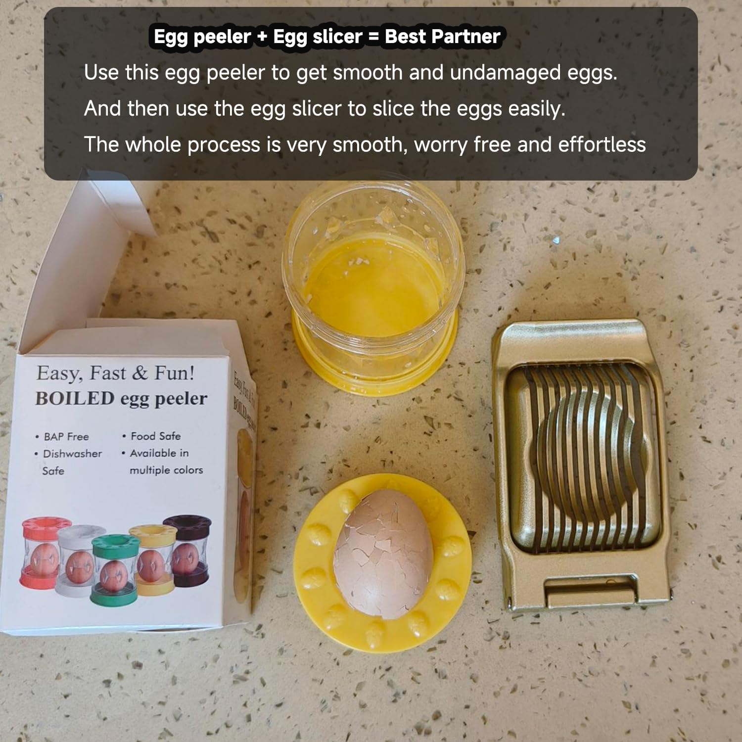 Egg Slicer for Hard Boiled Eggs, Heavy Duty Metal Stainless Steel Aluminum Alloy Egg Cutter for Egg Strawberry Mushroom Hot Dog Soft Fruit Kitchen Tool (Peeler+Slicer (Yellow & Gold))