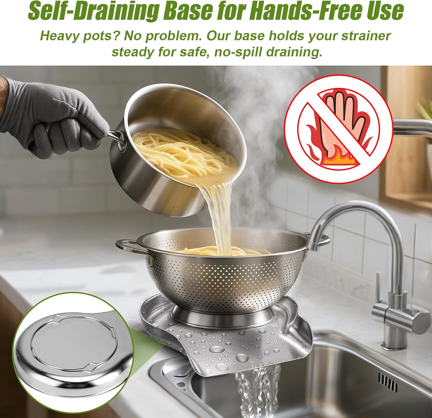 - Hands-Free Draining for Pasta & Noodles β Ideal for noodle colanders and pasta colanders, the base allows water to drain naturally so you can multitask in the kitchen without holding the strainer.