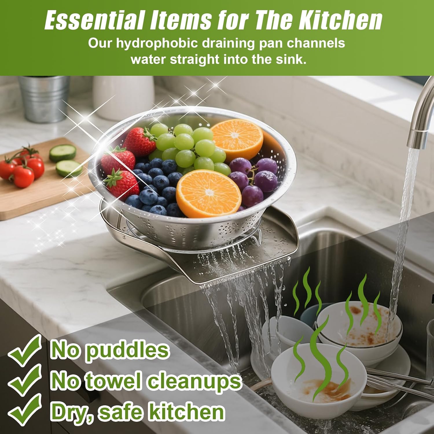 - Premium Stainless Steel Material β Built with durable stainless steel, this colander self-drainer base is sturdy, rust-resistant, and an eco-friendly alternative to plastic kitchen accessories.