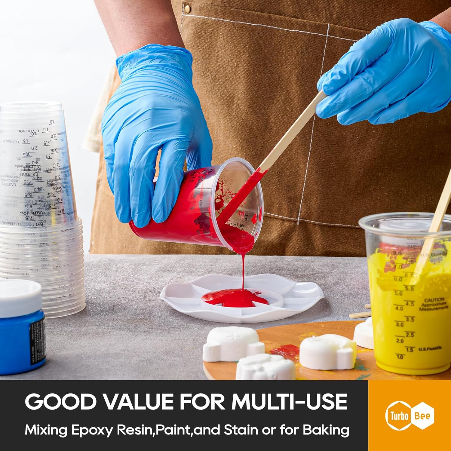 - Bulk 100-Pack with Mixing SticksMaximize value! This set includes 100 durable 8oz disposable measuring cups & 100 sturdy sticks. Perfect for epoxy resin molds, paint mixing, and saves you cleanup time