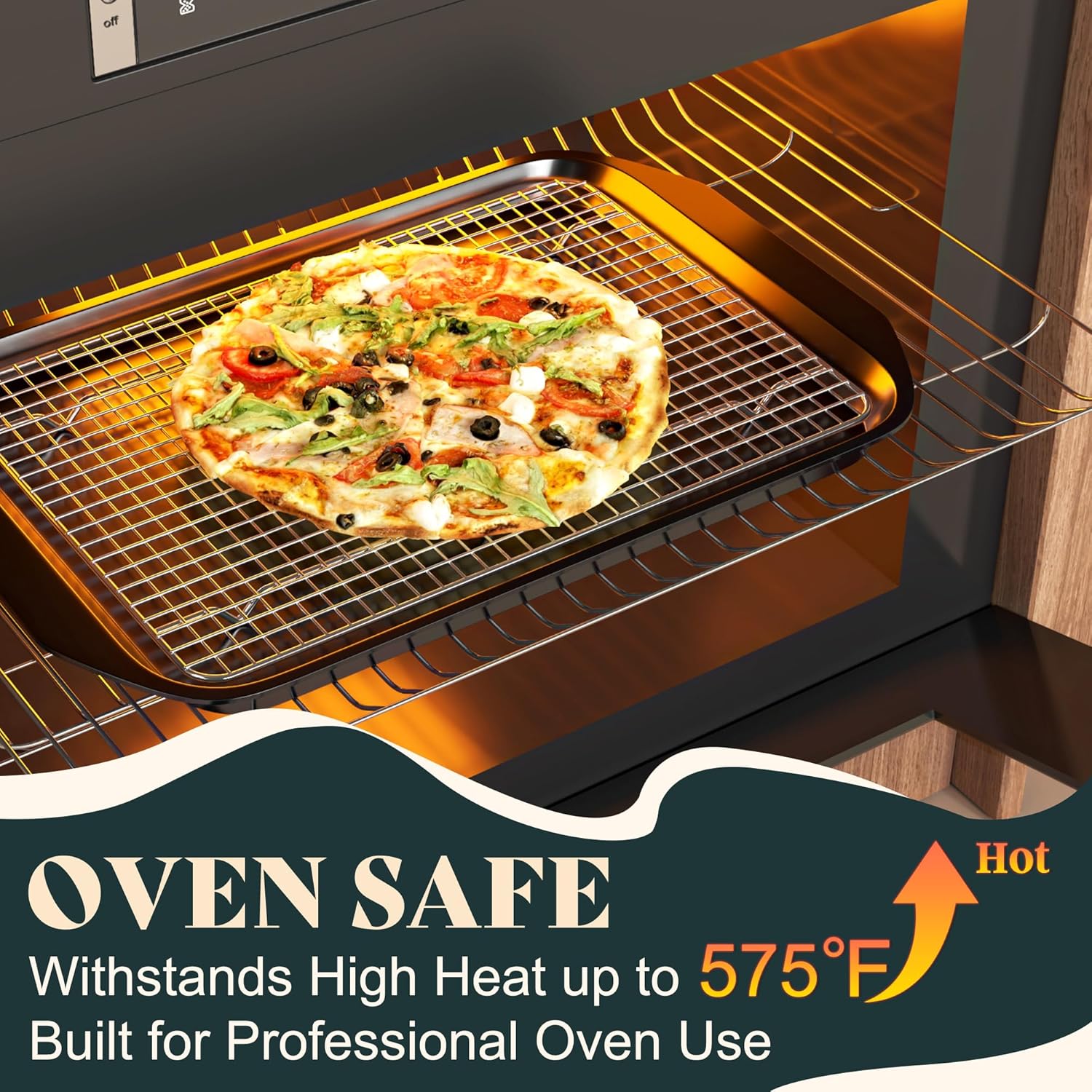- DISHWASHER & OVEN SAFE: Our baking rack not contain metal plating or coating, making it dishwasher safe and also easy to hand wash. At the same time, the superior material allows stainless steel cooling racks to heat resistant up to 575°F, so than can used with confidence to roast, bake, grill, smoke, and dry with confidence