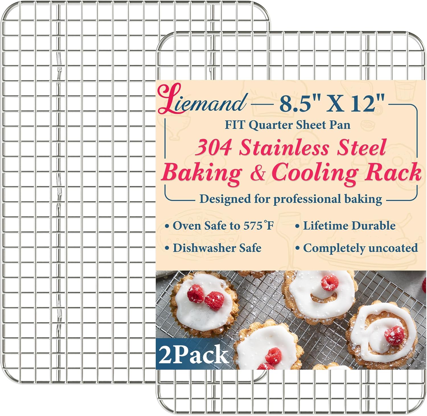 - DISHWASHER & OVEN SAFE: Our baking rack not contain metal plating or coating, making it dishwasher safe and also easy to hand wash. At the same time, the superior material allows stainless steel cooling racks to heat resistant up to 575°F, so than can used with confidence to roast, bake, grill, smoke, and dry with confidence