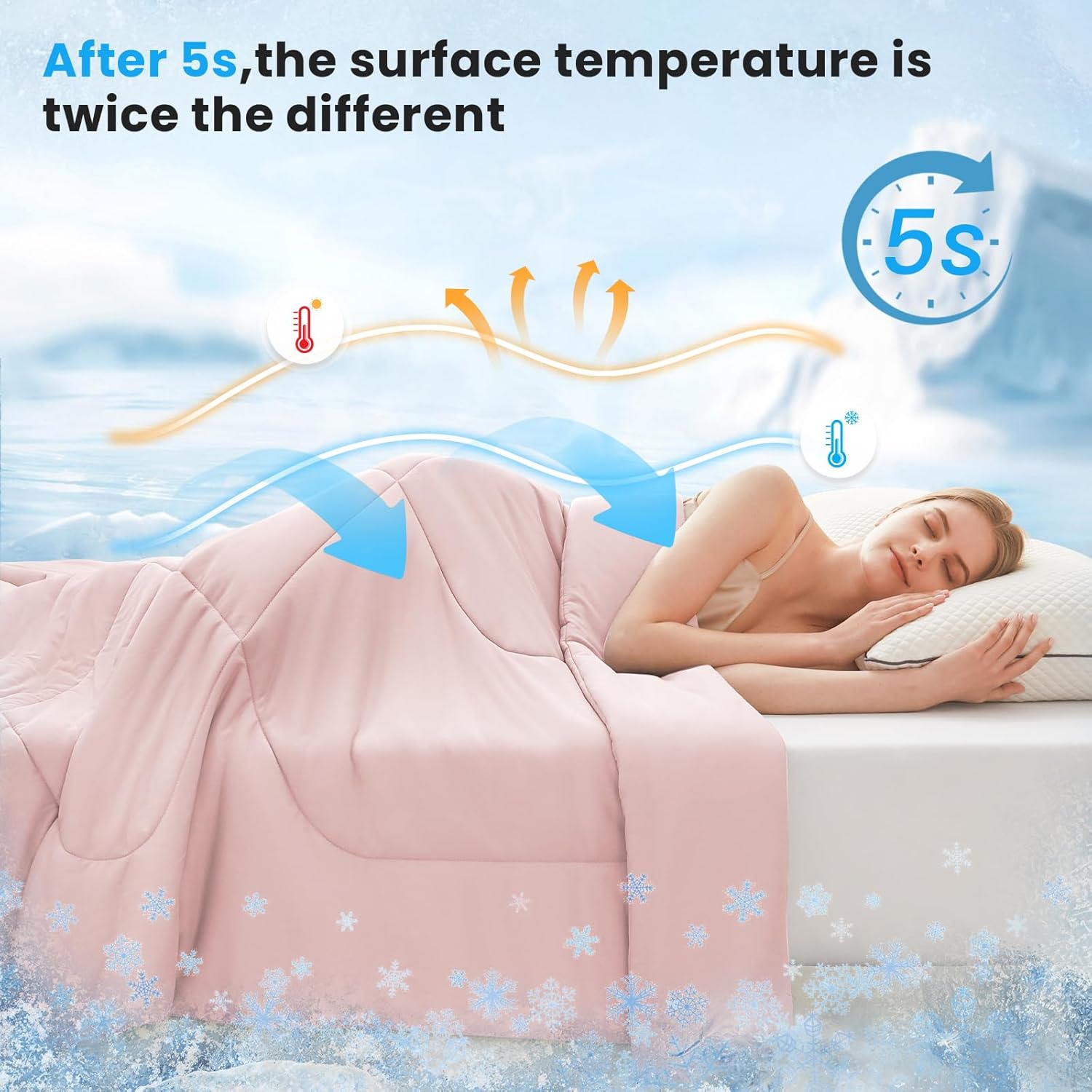 HYLEORY Cooling Comforter Queen Size - Summer Cooling Blanket for Hot Sleepers/Night Sweats, Double-Sided Cold Touch Silky Ice Comforters, Breathable Lightweight Beddings, Cool Pink, 90"x90"