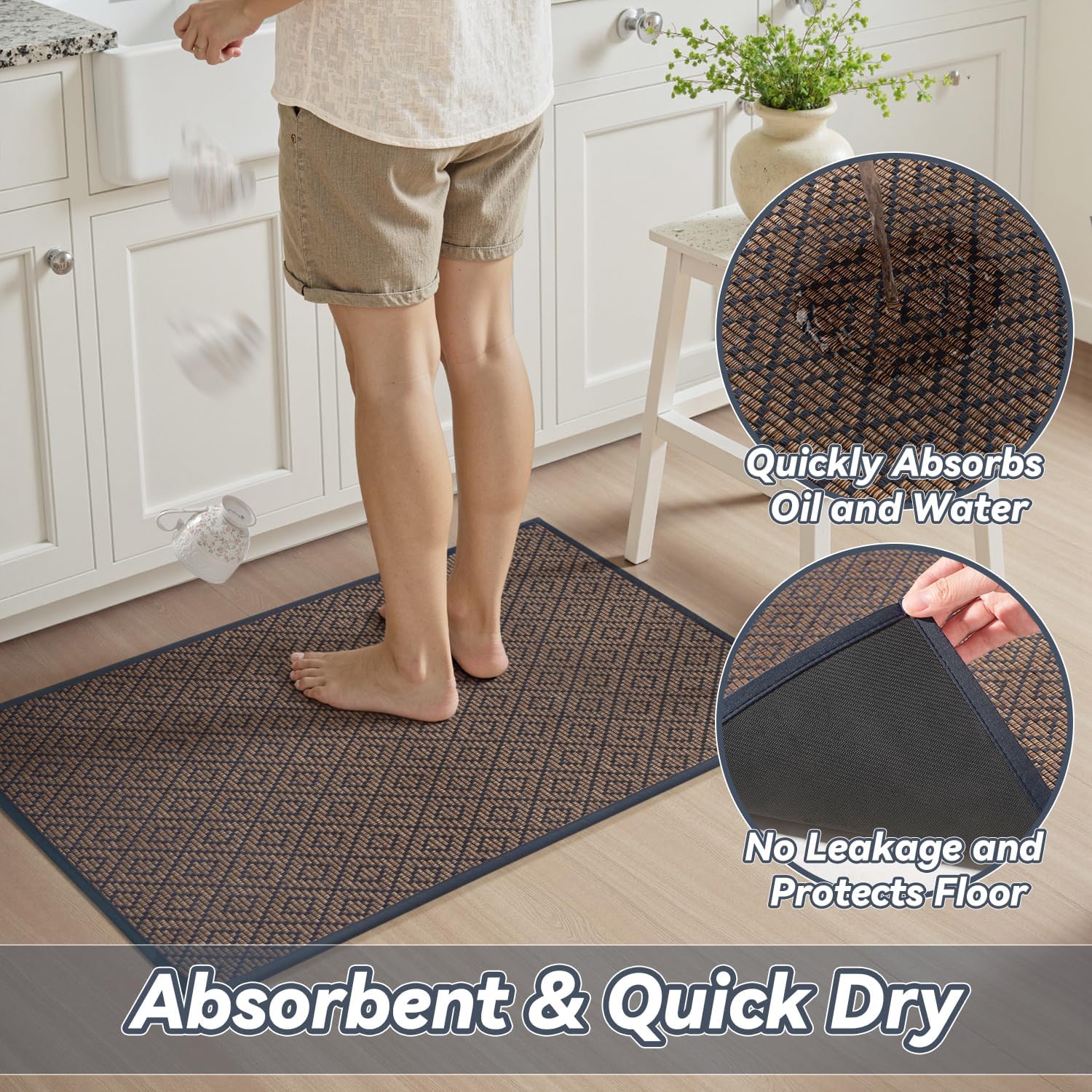 - Super Absorbent: These absorbent kitchen rugs quickly soak up spills, water drips and oil droplets, keeping your kitchen floors dry and clean. Ideal as a kitchen sink mat to protect against everyday messes in busy households.