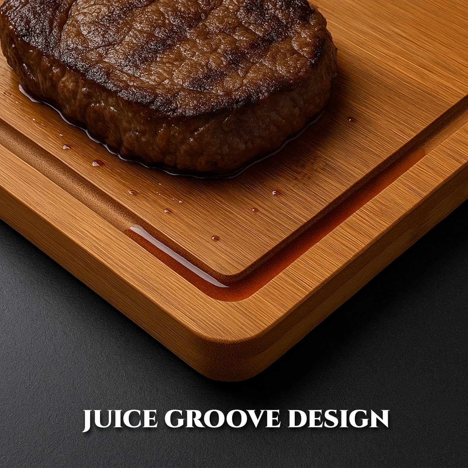 Bamboo Cutting Board 3-Piece Set with Juice Grooves – Non-Slip Wooden Chopping Boards for Kitchen & Housewarming Gfit, Multi-Size Serving Tray for Meat, Vegetables, Fruits