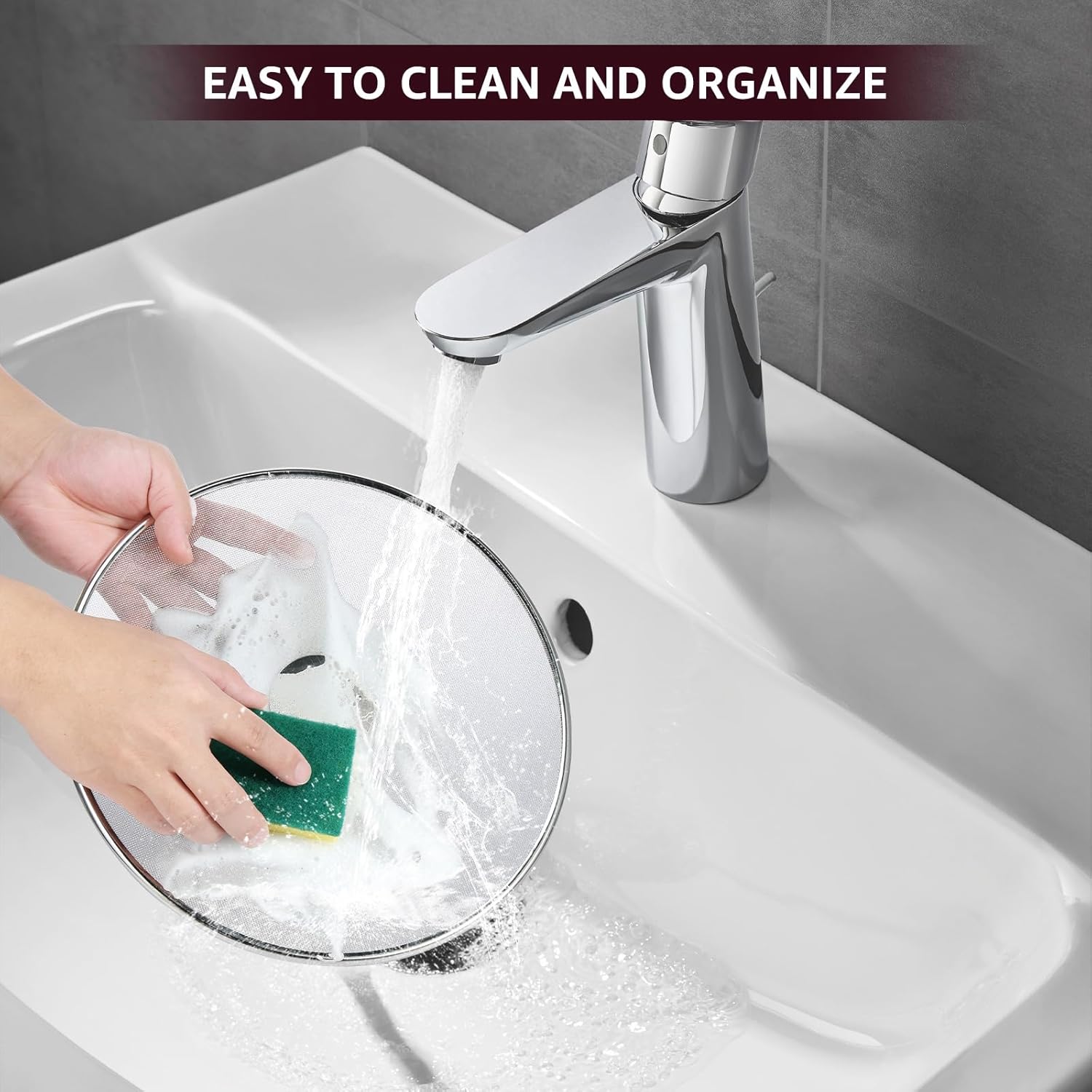 - [Stainless Steel Material] This splatter screen is made of stainless steel with a fine mesh structure to avoid oil splashing, is high temperature resistant, and can be used for a long time.