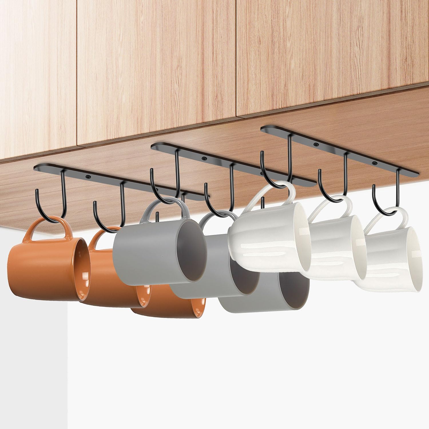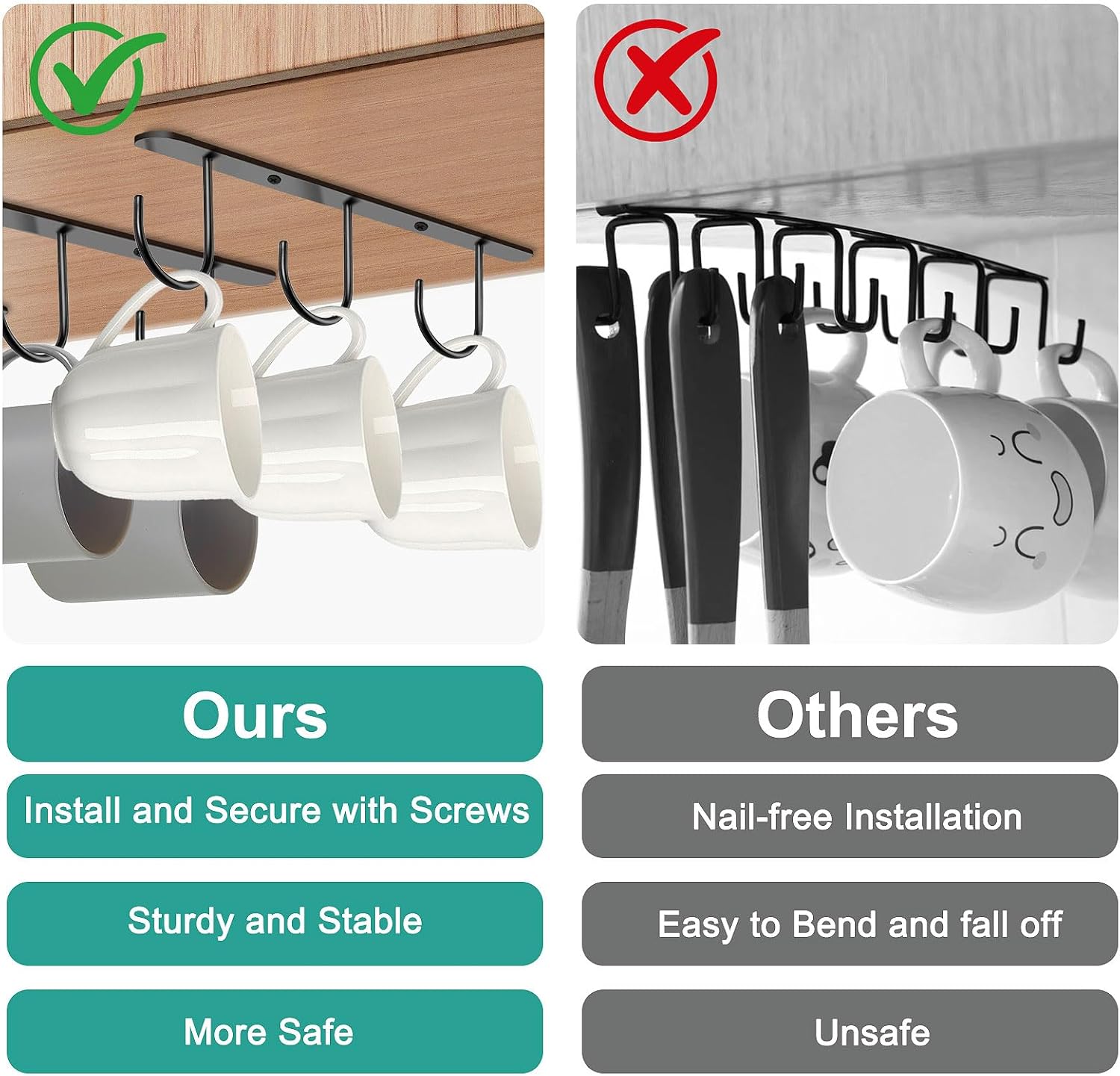 - 【Premium Material】The mug hooks under cabinet are made of upgraded premium iron, which are sturdy and stable; And surface of the coffee mug hooks adopt advanced coating technology, which is waterproof and moisture-proof.