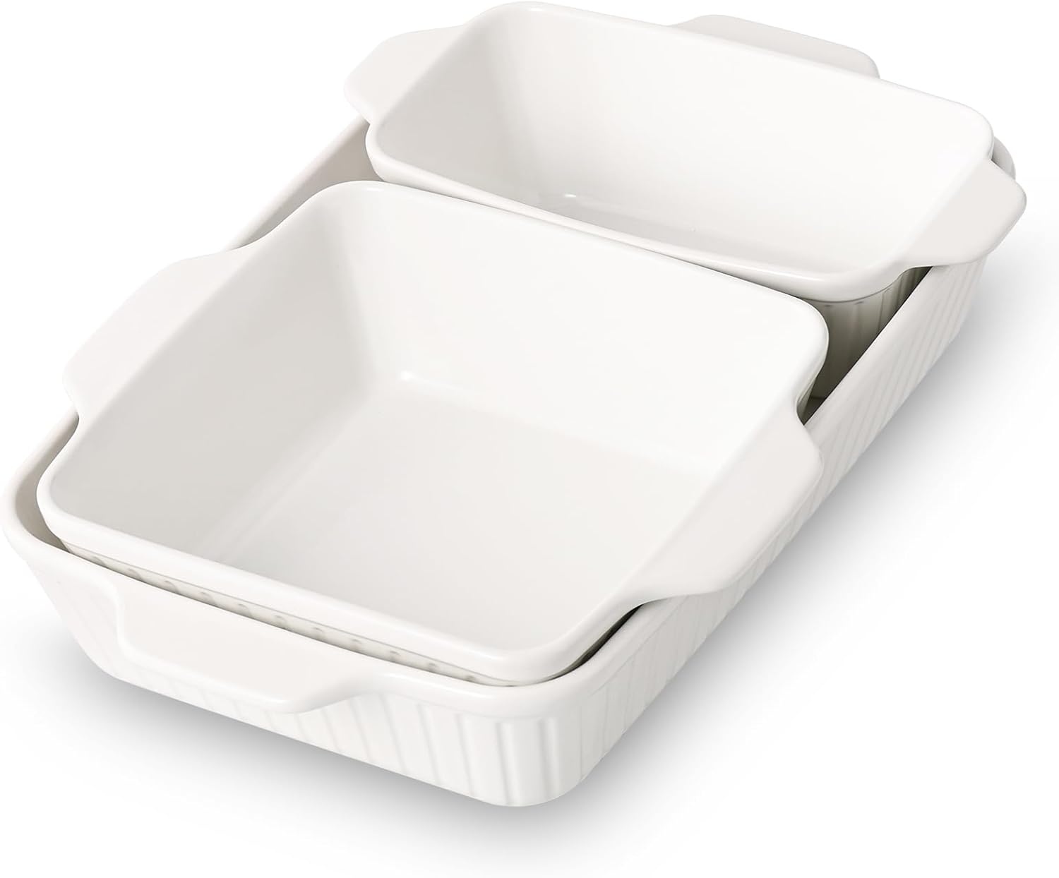 DOWAN Casserole Dishes for Oven, Baking Dishes Set, Ceramic Bakeware Sets of 3, Lasagna Pan Deep, Rectangular Baking Pan Set with Handles for Baking, Casserole, Kitchen, Wedding Gift, White (13''/8''/4'')