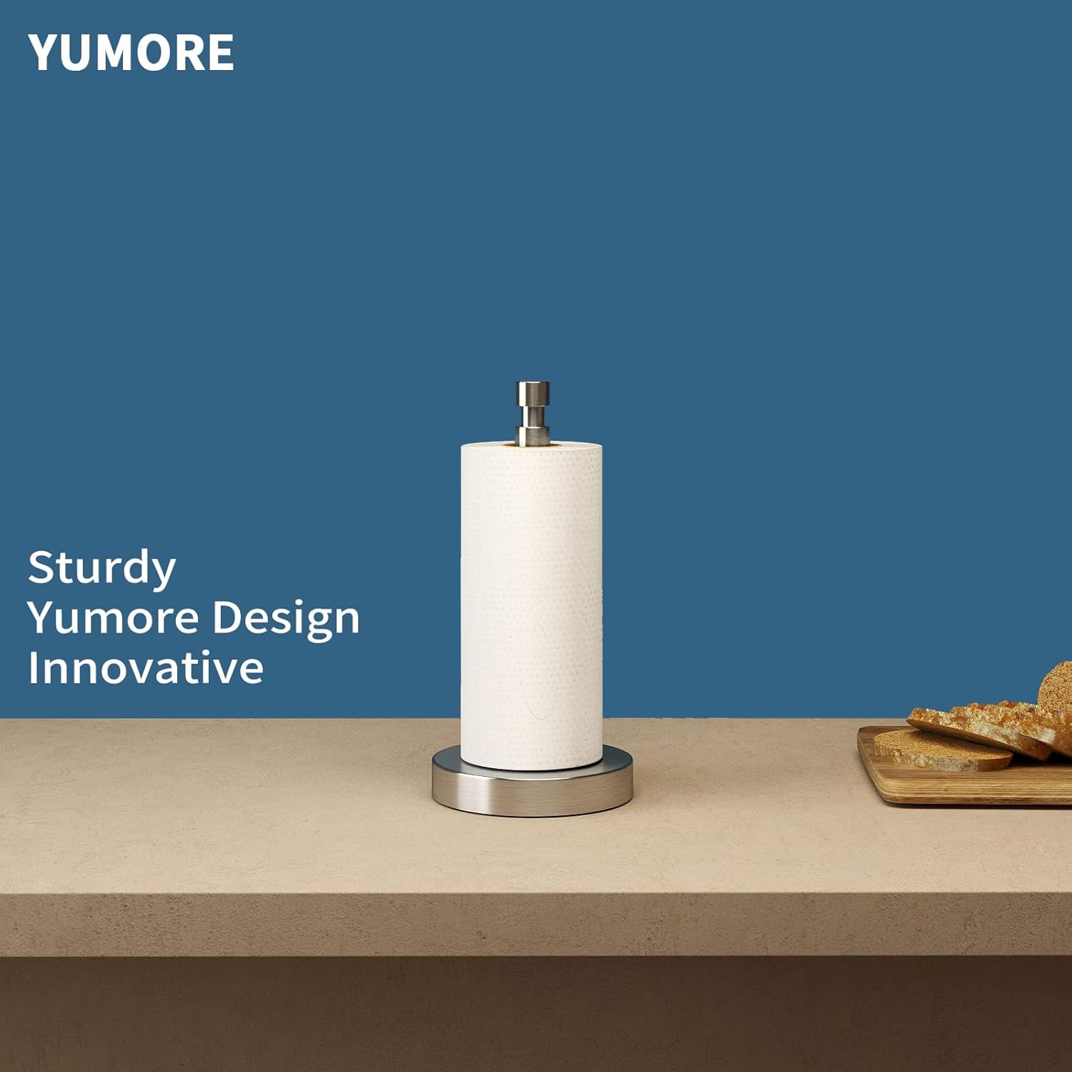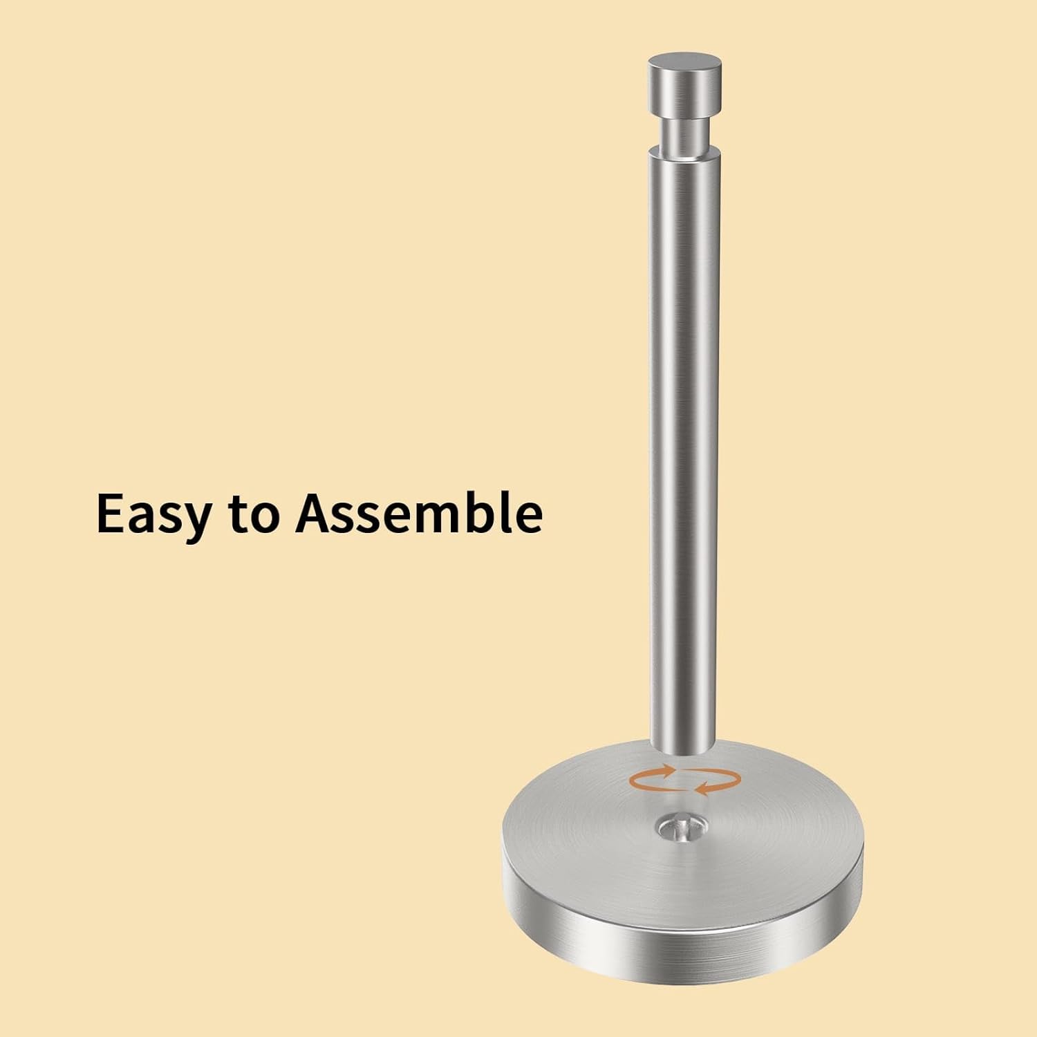Paper Towel Holder Countertop, Black Paper Towel Holder with Weighted Base Non Slip, Standing Paper Towel Roll Holder for Kitchen Bathroom, Easy One-Handed Operation, Stainles Steel (Brushed Nickel)