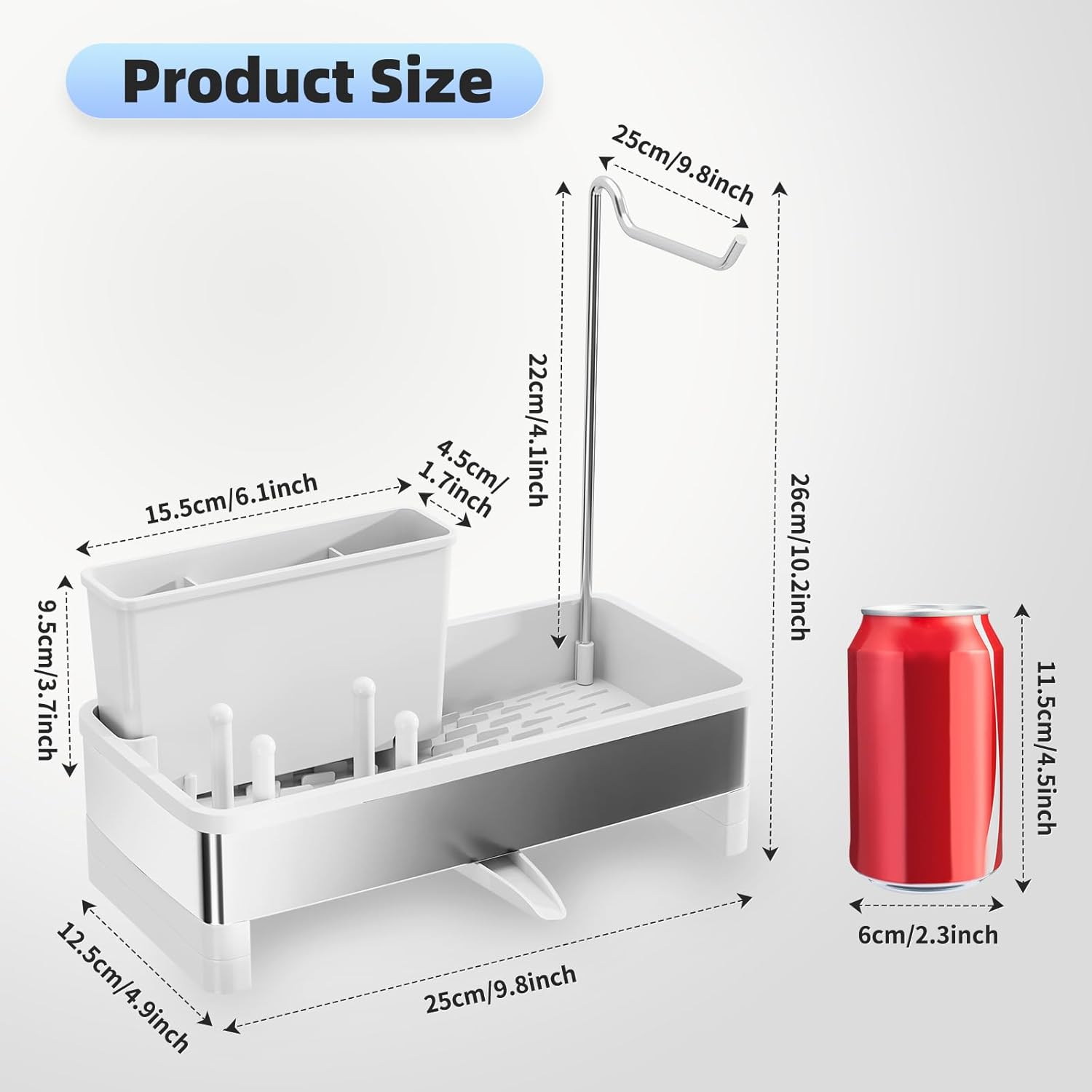 - ăRemovable Brush Holder & Dish Cloth HangerăIt not only serves as a sink sponge holder, but also comes with a removable brush holder that can accommodate brushes of different sizes. It also features a towel rack that allows your dish towels to hang and dry easily. Our sink caddy allows you to organize and store kitchen cleaning supplies more efficiently, saving space in your kitchen.