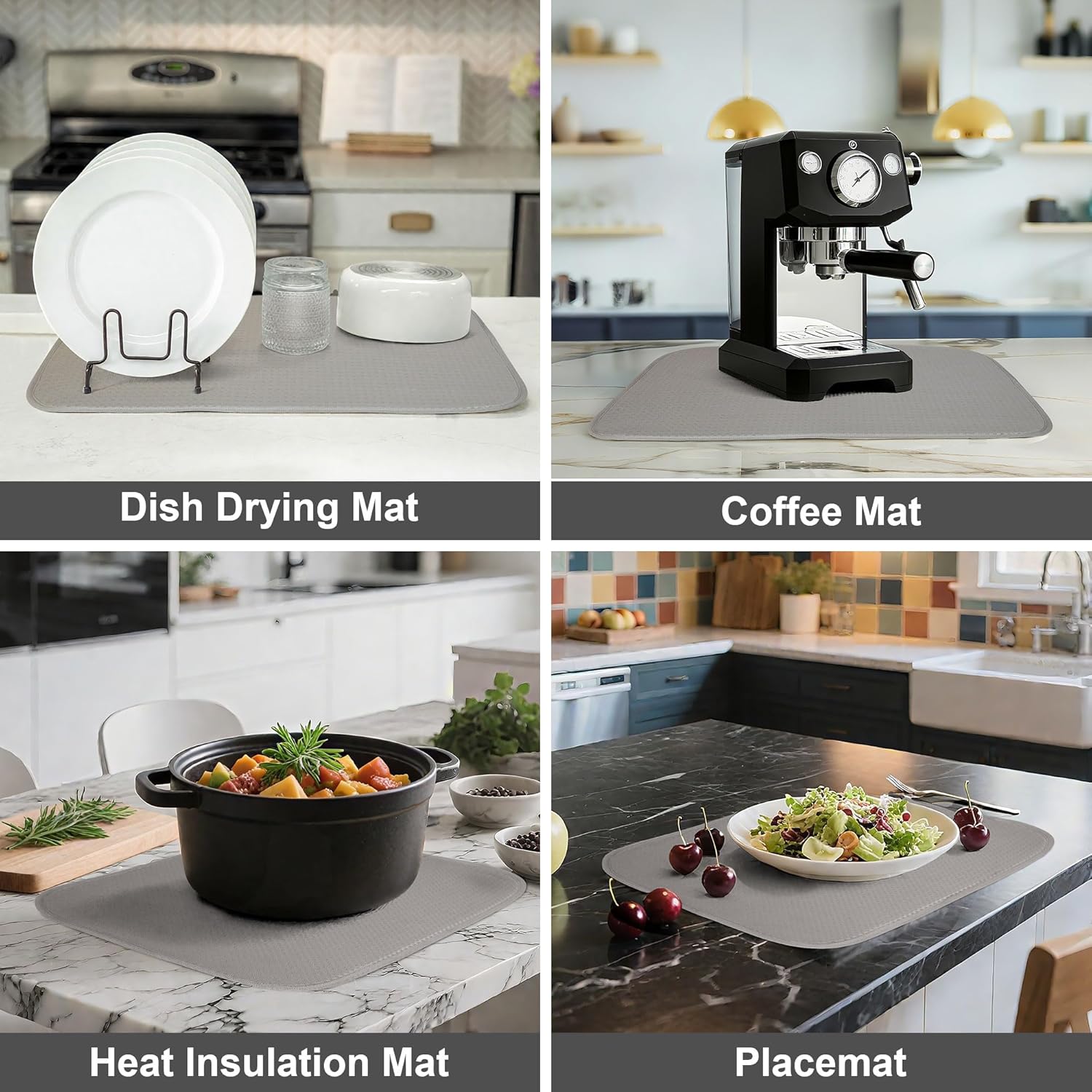 - Versatile & Multi-Purpose: Ideal as a dish rack mat, dish drainer mat, or even a protective pad under coffee makers, air fryers, and other countertop appliances