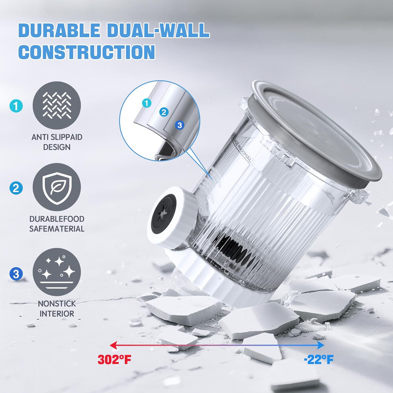 - BPA-FREE & DISHWASHER-SAFE: The upgraded NC701 series pint is made of food-grade, BPA-free material, which is stronger and more durable. It can withstand temperatures from -22°F to 302°F (-30°C to 150°C). Safe for dishwasher cleaning and reusable for years without odor retention or discoloration.