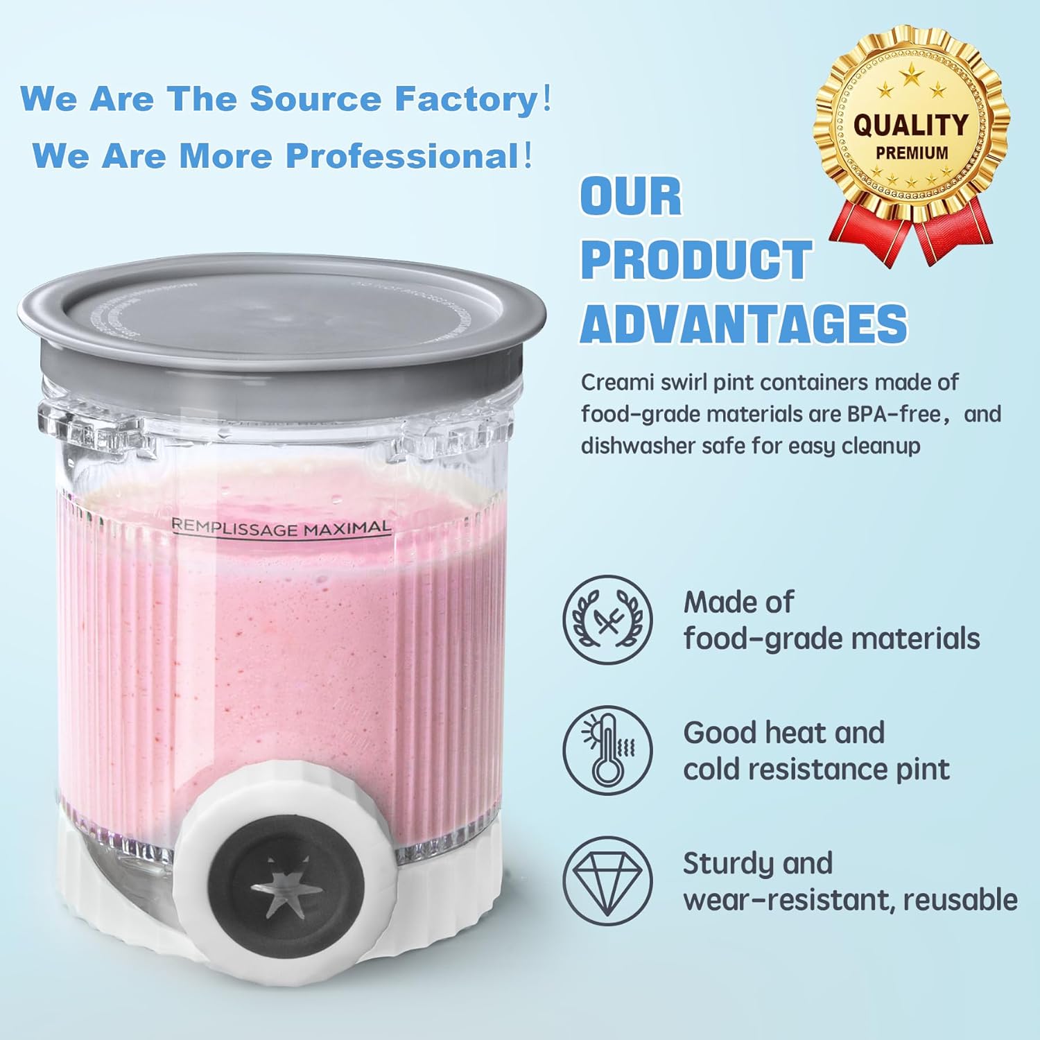 4 Pack Creami Swirl Pints & Lids for Ninja, Compatible with NC700 Series Ninja Swirl Ice Cream & Soft Serve Makers, with 4 Spoons & 64 Writable Labels, BPA-Free & Dishwasher Safe, Grey Lids