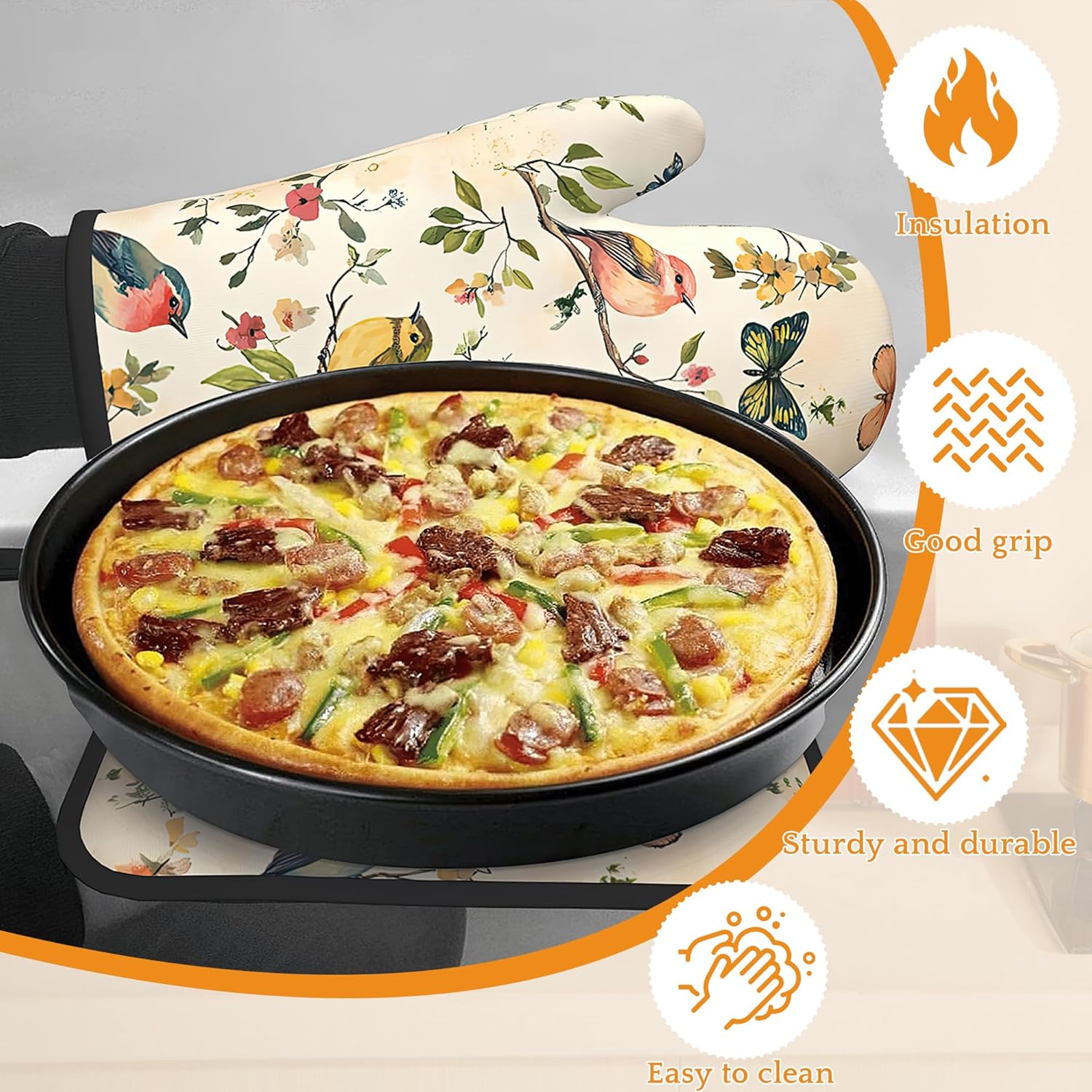 - 4-Piece Set: Includes 2 oven mitts and 2 heat-resistant pads, providing a practical and complete combination for your daily kitchen needs. Ideal for cooking, baking, grilling, and handling hot dishes.