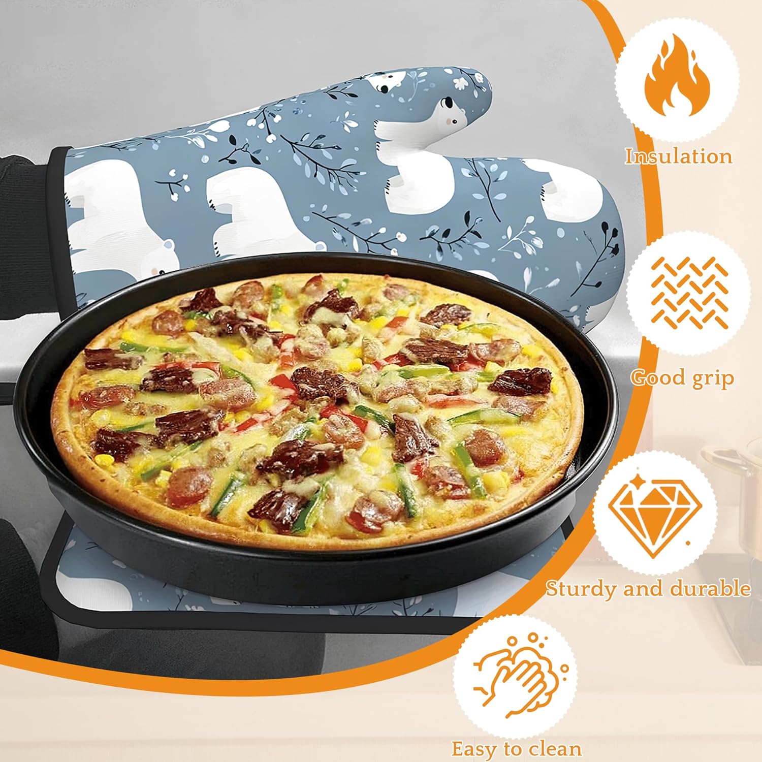 - Heat Resistant: Made from polyester and insulating cotton, these oven mitts and pot holders provide excellent heat resistance to effectively protect your hands from hot pots, pans, and baking trays. Cook with confidence and safety.