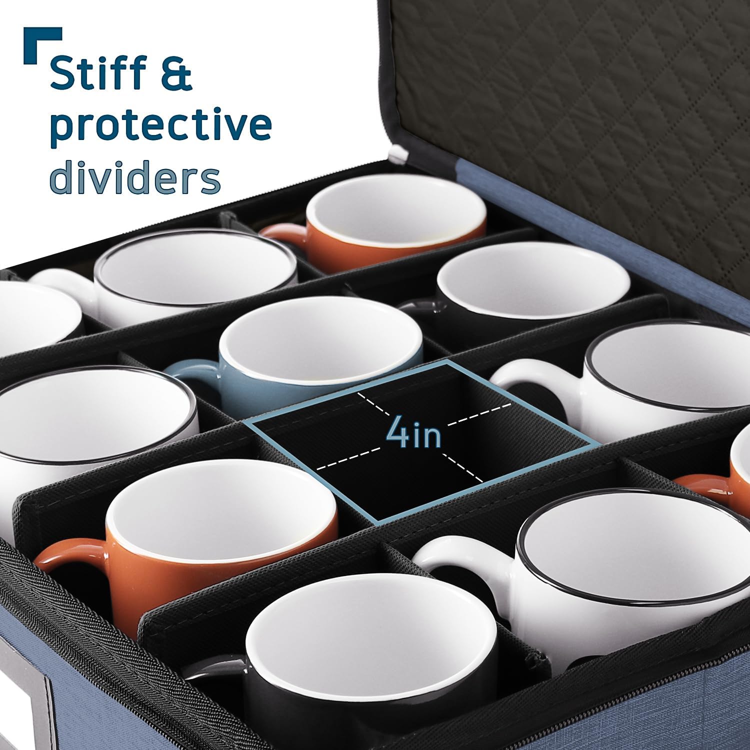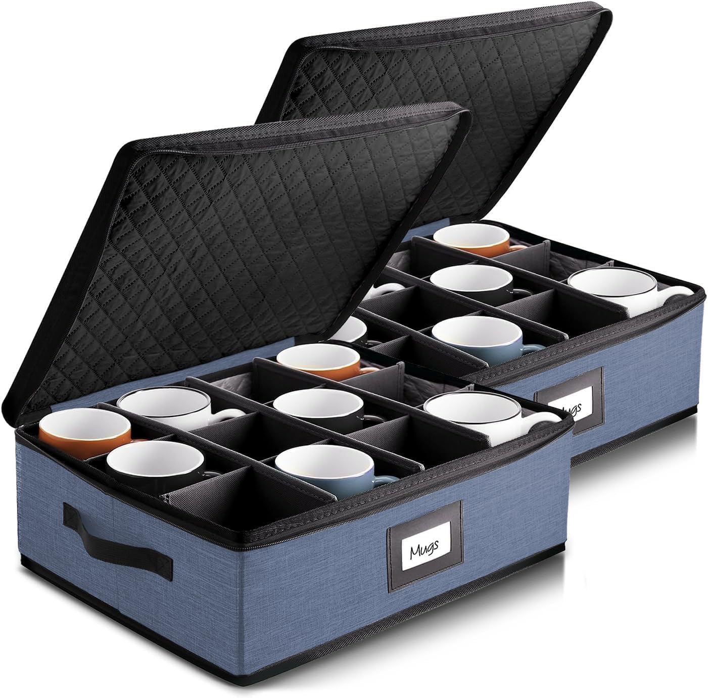 Coffee Mug Storage, 2 Pack Quilted and Stackable Coffee Cup Storage Organizer for Service of 24, Mug Storage Box with Dividers, China Containers Hard Shell for Moving and Organization, Blue