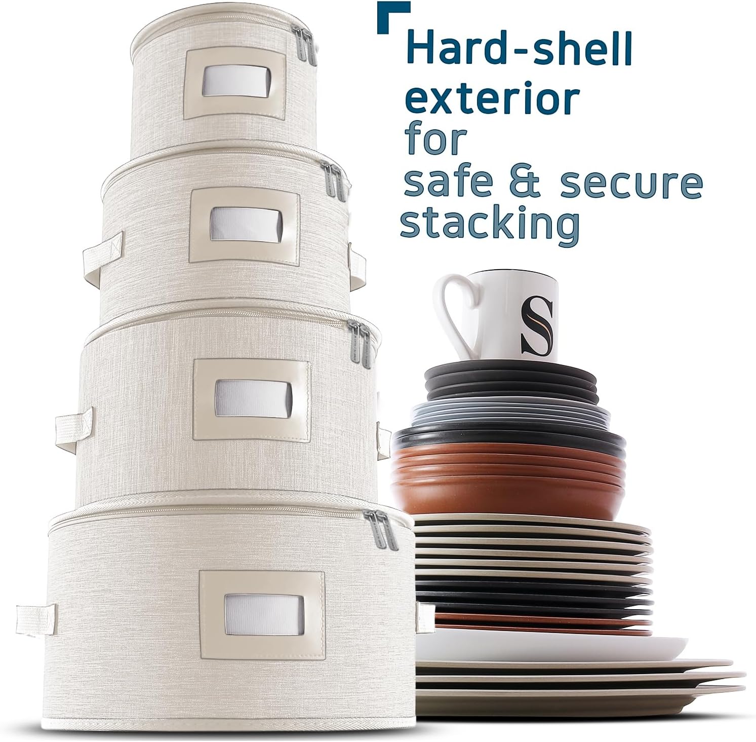 - Fine China Storage Containers: Protect your china dinnerware from dust, chips, scratches, or accidental impacts. Our dish storage containers fit plates and cups for up to 12 people.