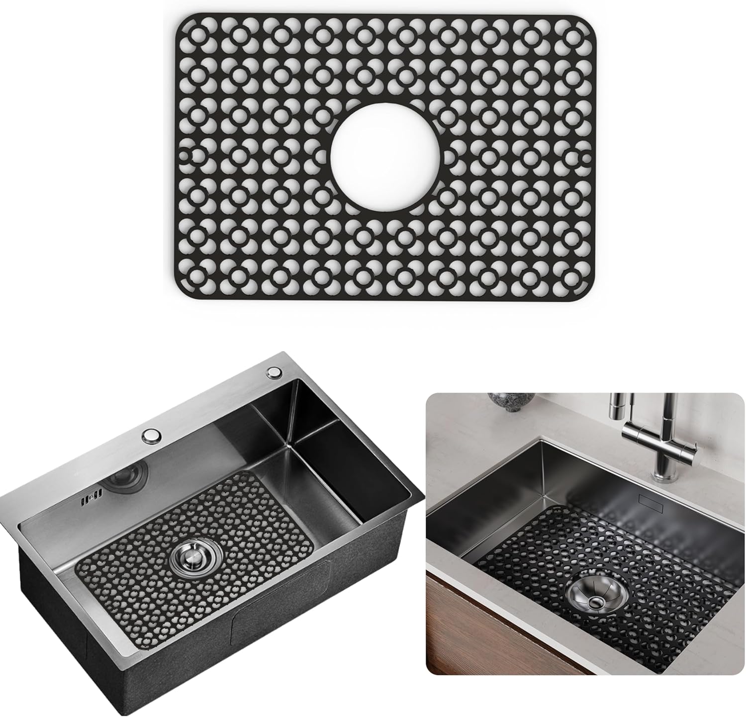 - - Made of durable black silicone, these sink mats provide excellent skid resistance pvc free silicone sink mat grid for bottom of kitchen sink and dishwasher safe grid mat design