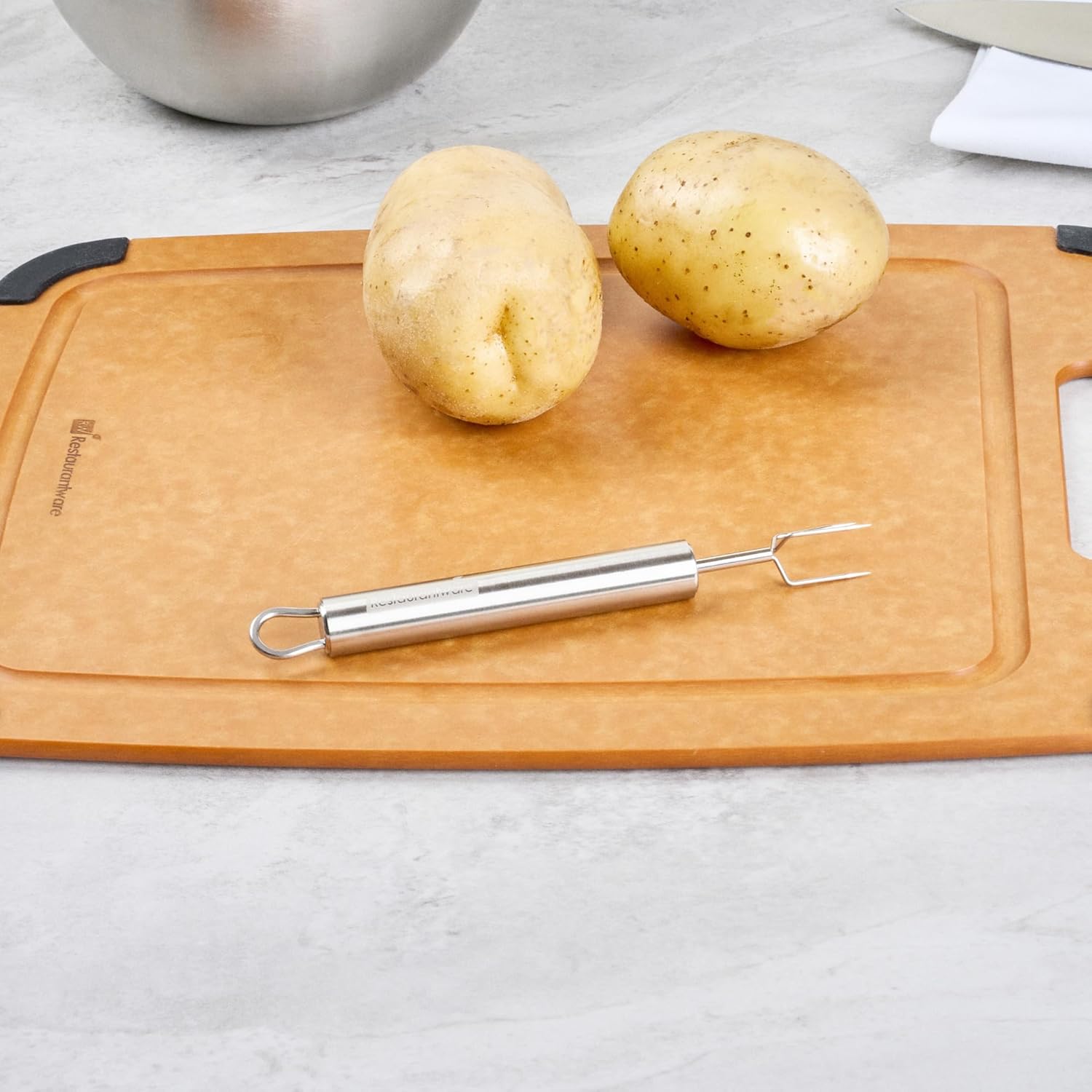 - EASY TO CLEAN & STORE: Simplify your cleanup routine! These stainless steel potato forks are dishwashable for efficient cleaning. Plus, the attached eyelet hook allows for handy storage.