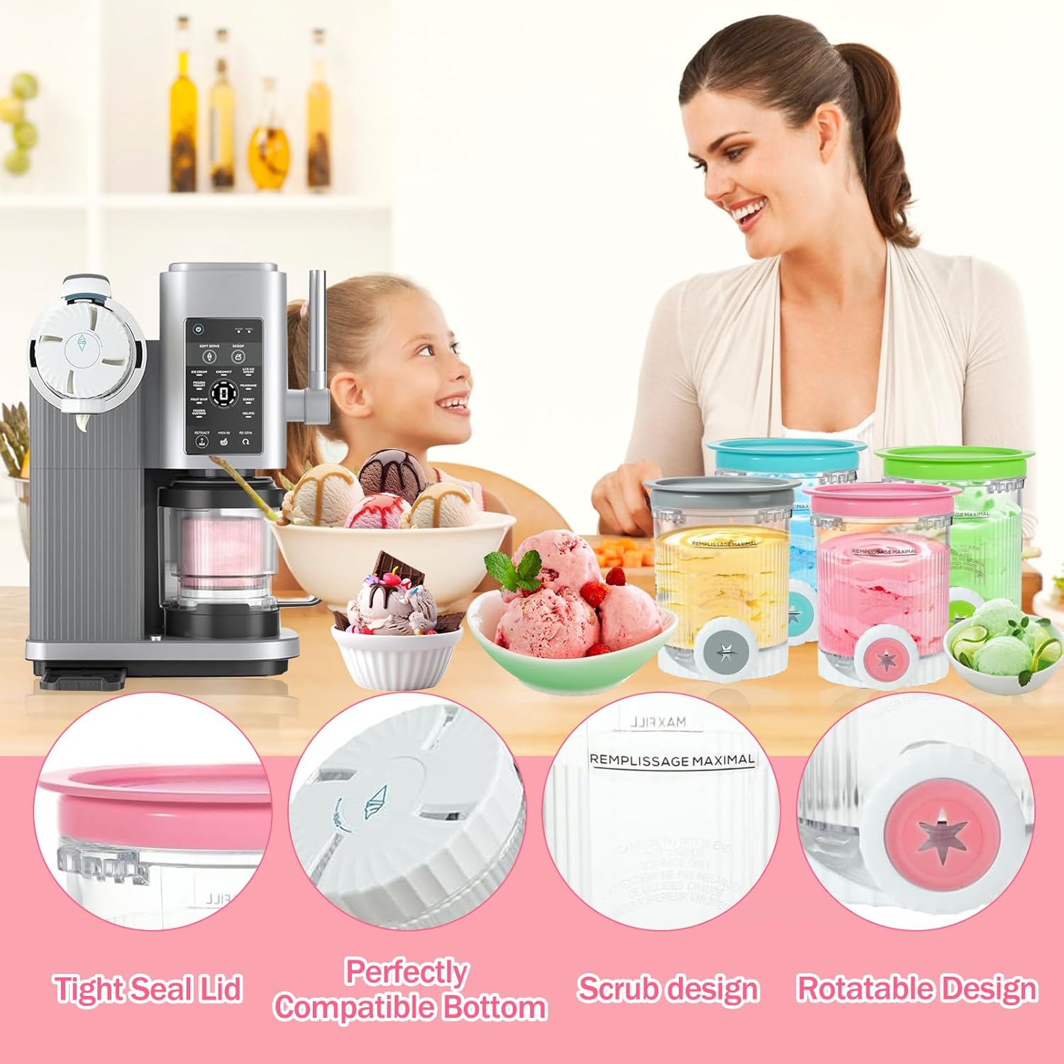 4 Pack Pints and Lids for Ninja CREAMi NC701 NC700 Ice Cream Maker Accessories Creami Containers Compatible with Ninja NC700 Series, 16 oz Containers Ice Cream Maker