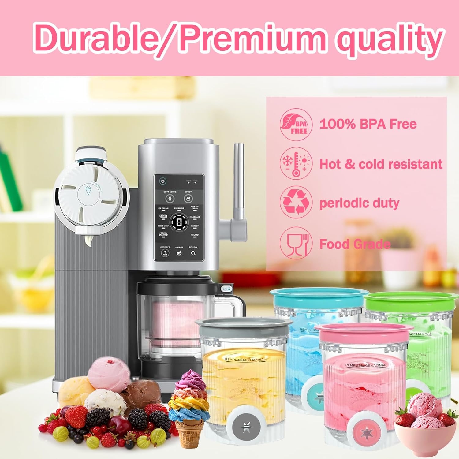 - Premium, BPA-Free & Temperature-Tough Construction: Replacement for ninja nc700 creami containers crafted with unwavering quality using durable, food-grade materials. The for ninja ice cream maker accessories sturdy polypropylene pint container and food-grade lid are rigorously BPA-Free, Withstands extreme temperatures (-30°C to 150°C / -22°F to 302°F) for freezing, spinning, and cleaning.
