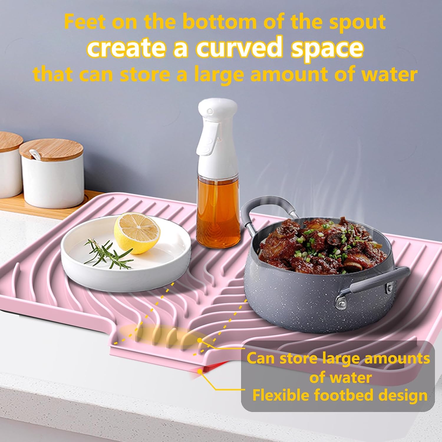 Silicone Drying Mat for Kitchen Counter, 18"×12" Silicone Dish Drying Mat with Board Drain,Rubber Kitchen Counter Dry Matt for Dishes Drying Rack(pink)