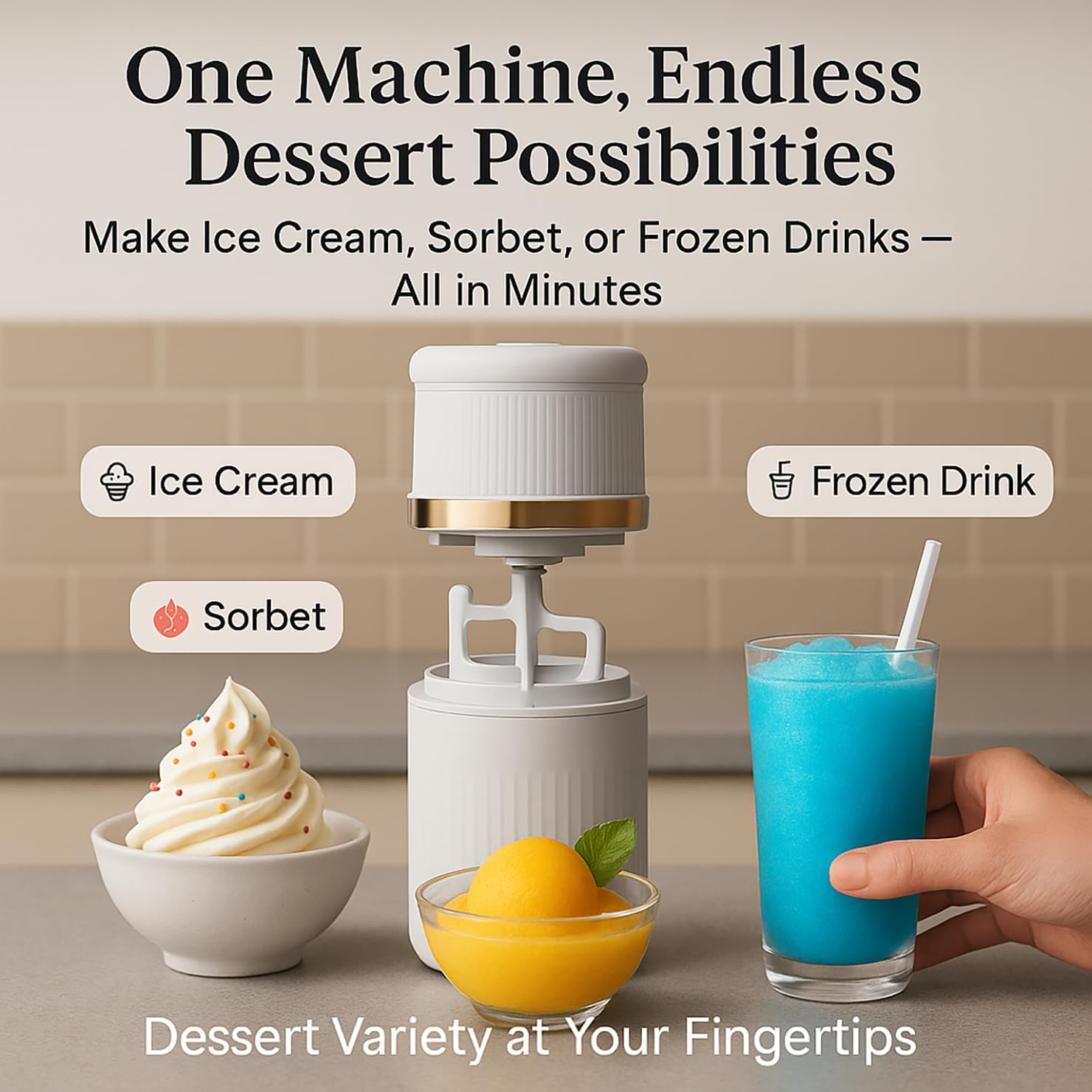 - [Quick & Easy Ice Cream Maker ] : With our electric ice cream maker machine, whip up creamy homemade treats like gelato, sorbet, ice cream, and frozen yogurt in just 15–30 minutes! Unlike a traditional icecream maker machine, it needs no ice or salt—just pre-freeze the detachable bowl for 12+ hours. Then churn your ingredients into smooth desserts using this convenient frozen yogurt machine.
