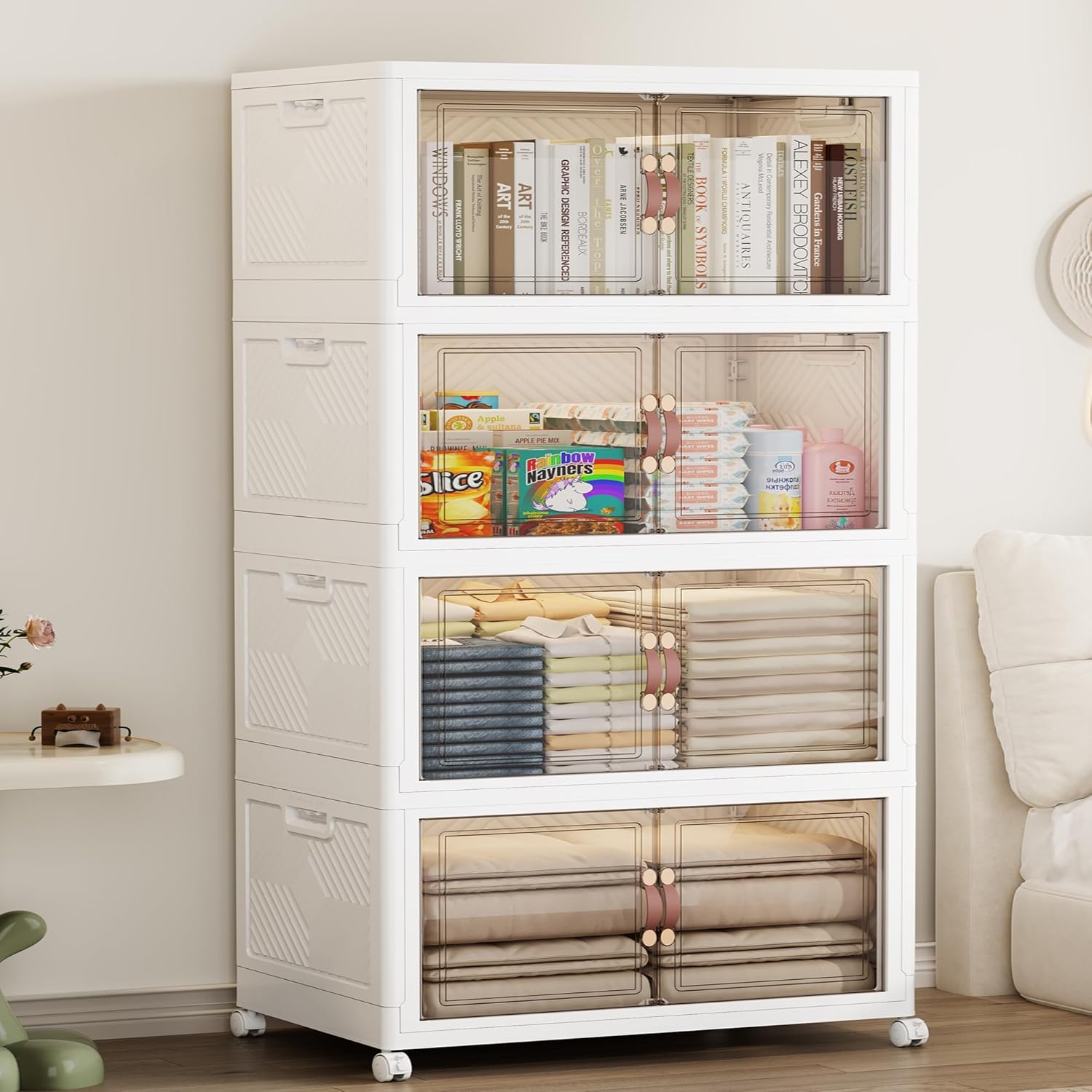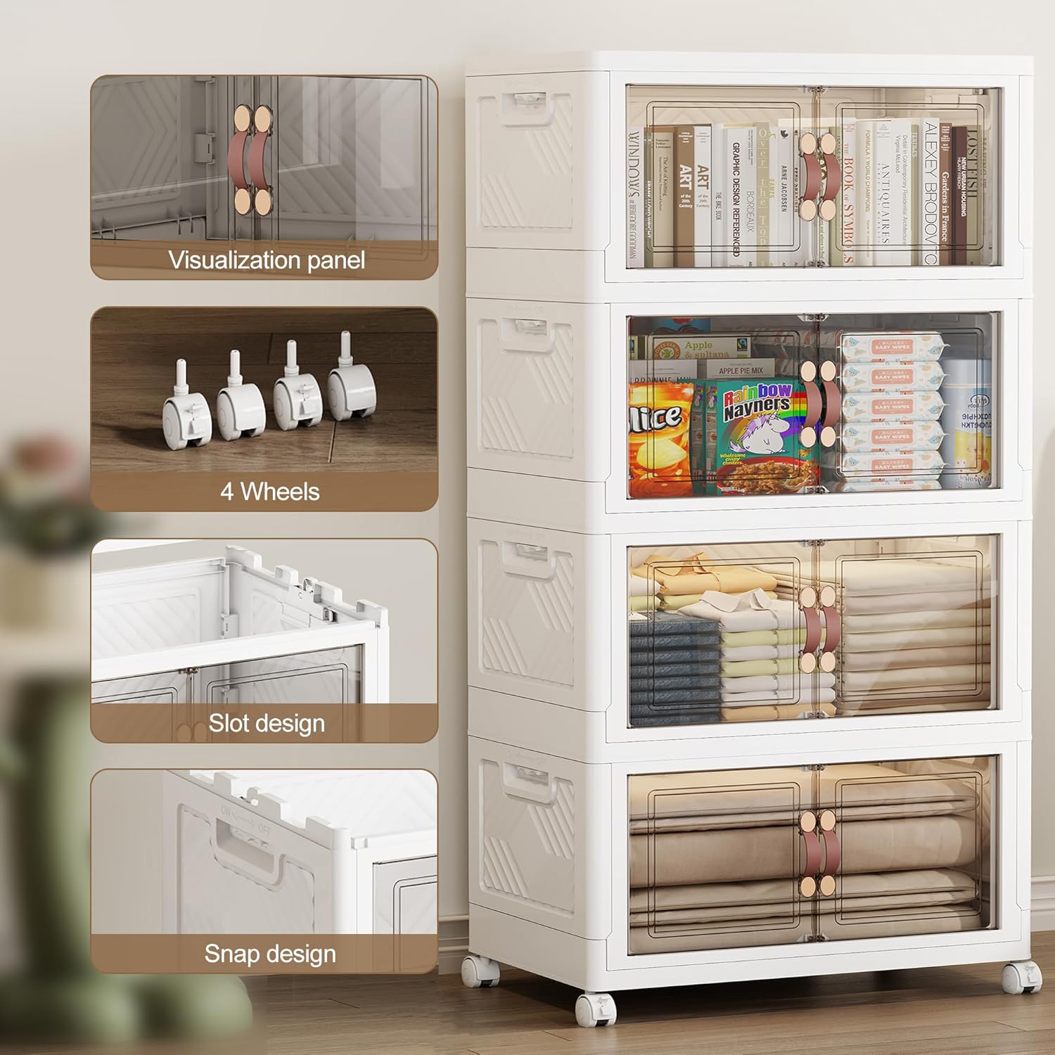 SAILUN 331QT/82 Gal Extra Stackable Storage Bins Large Collapsible Storage Bins with Wheels and Lid, Open Front Folding Closet Organizers and Storage,4Pack 23.6" W x 15" D x 54" H