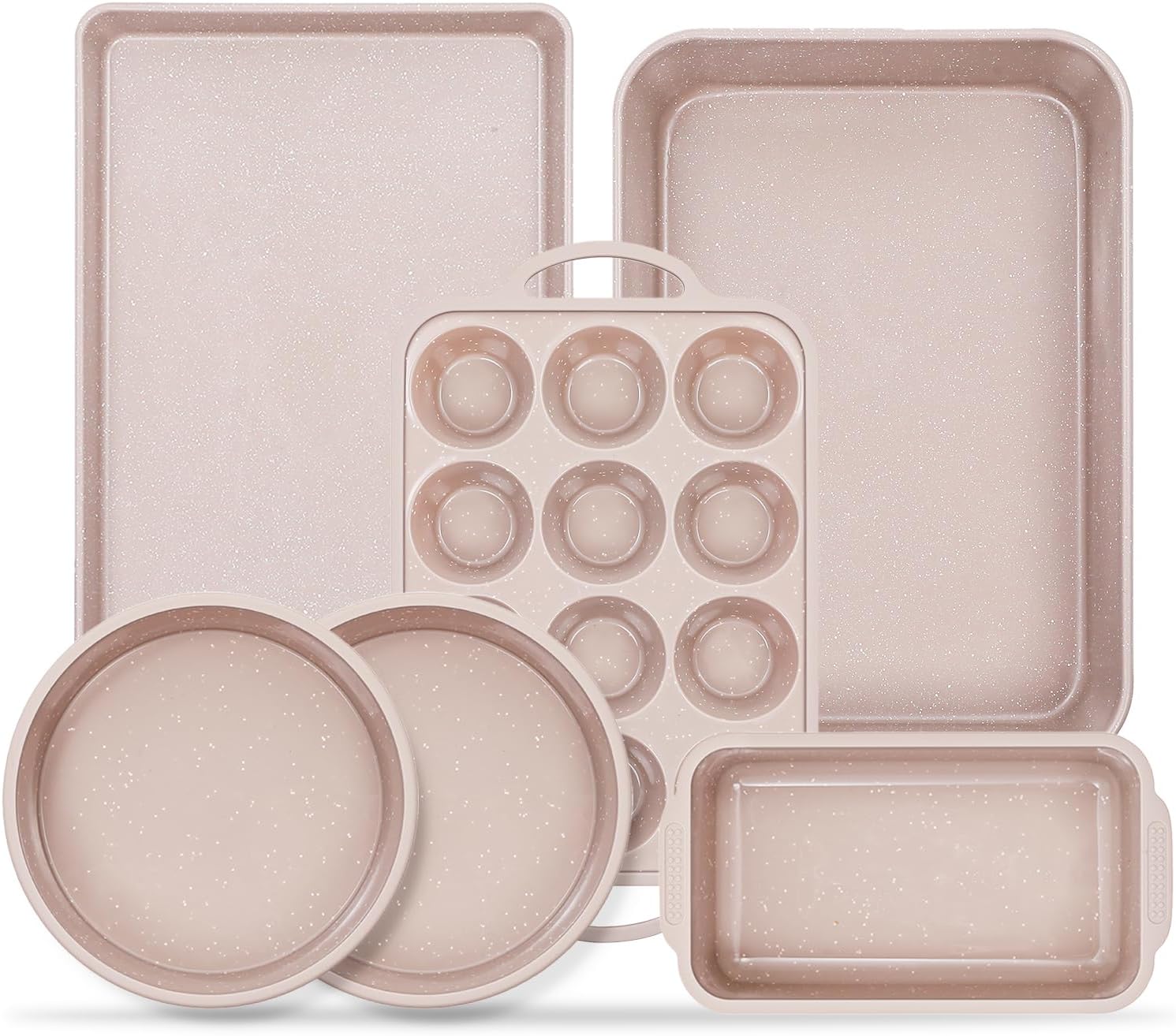 - Effortless Cleaning: Say goodbye to stuck-on food and scrubbing for hours! Our entire set is designed for ultimate nonstick performance. Your cookies, muffins, and bread will slide right out, making serving a snap. Simply wipe pans clean or place them all in the dishwasher for a completely hassle-free cleanup, giving you more time to enjoy with your family.