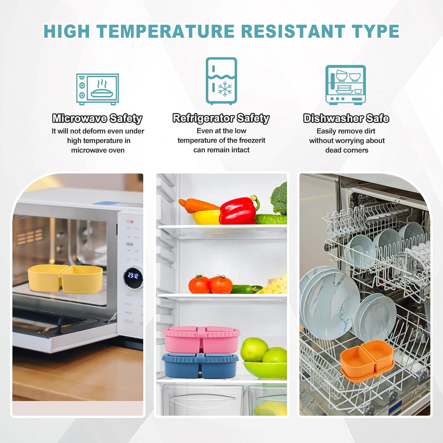 - DUAL COMPARTMENT DESIGN: 8 oz silicone container features 2 separate sections for organized snack storage, perfect for portion control and keeping foods separate