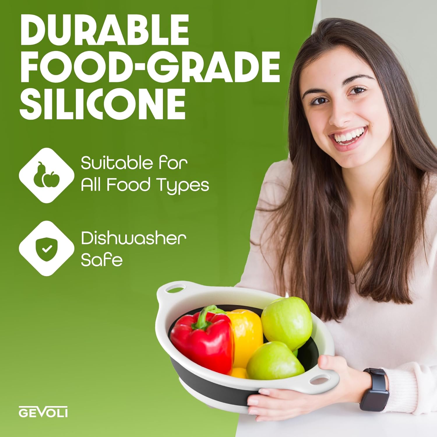 Collapsible Colanders (2 Pack Set) Food Strainers with Over-Sink Water Draining Base for Pasta Fruits and Vegetables (4 and 5 Quart) - White Gray