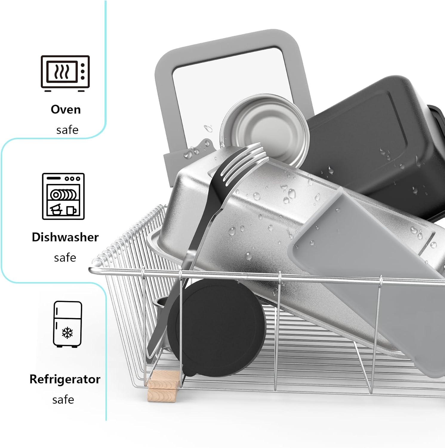 - From Microwave to Table: The smooth curved stainless steel design makes it compatible with microwave (Open the lid: microwave mode power <1000w, heating <5 minutes), and also suitable for ovens, refrigerators, and dishwashers