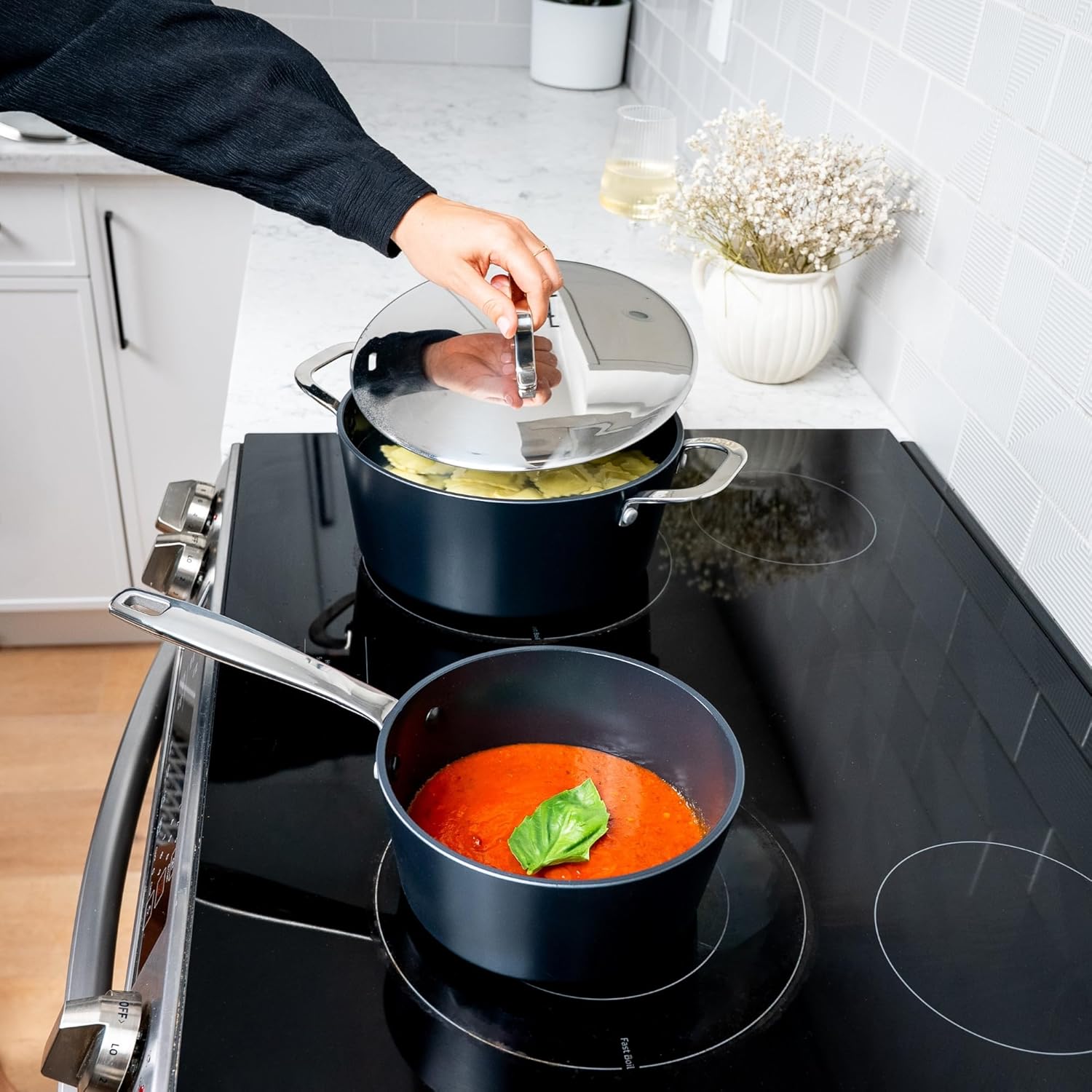 - Essential Everyday Pieces Includes 9.5" frying pan with lid, 2.5QT saucepan with lid, and 5.4QT stock pot with lid—perfect for sautéing, simmering, and one-pot meals.