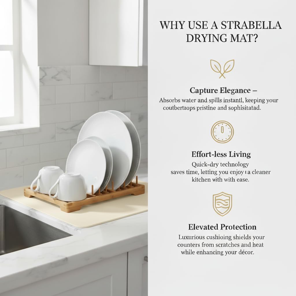 - MULTI-PURPOSE: Elevate your kitchen experience with our Multi-Use Dish Drying Mat. Its versatile design makes it perfect for drying dishes, and glassware, or even as a protective surface for countertop appliances. Streamline your kitchen tasks with a single, versatile solution.