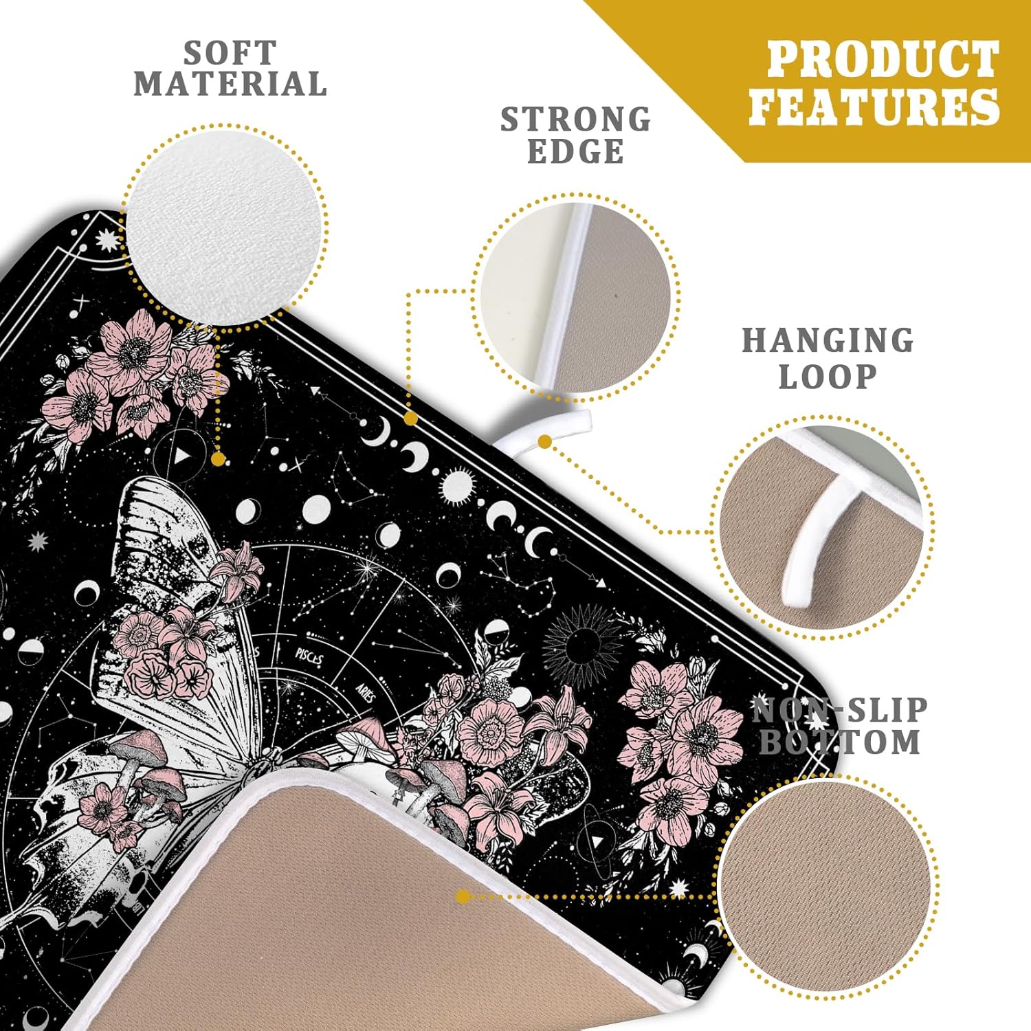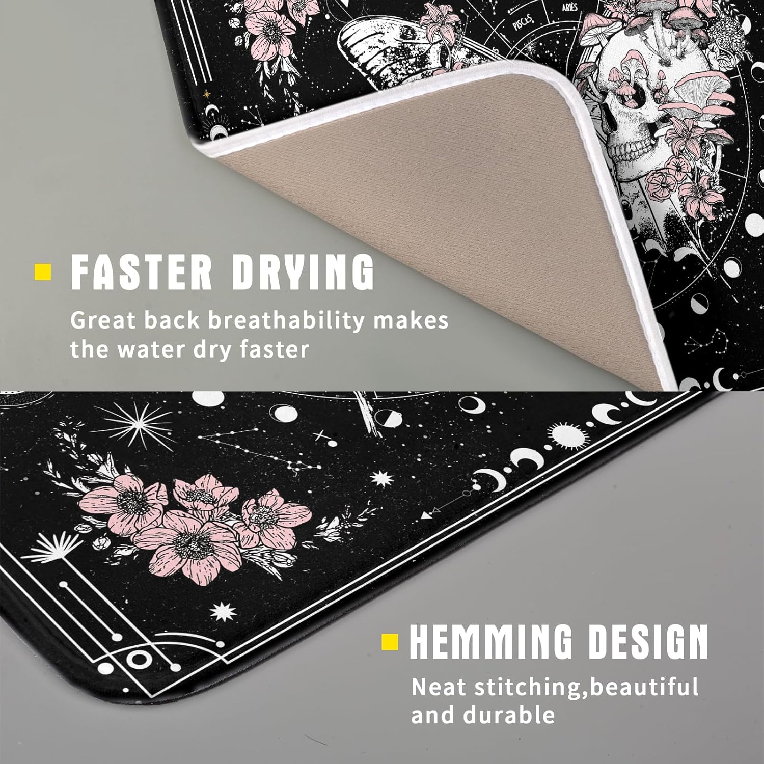 Skeleton Butterfly Dish Drying Mat Black Skull Absorbent Dish Drainer for Kitchen Counter Holiday Decor