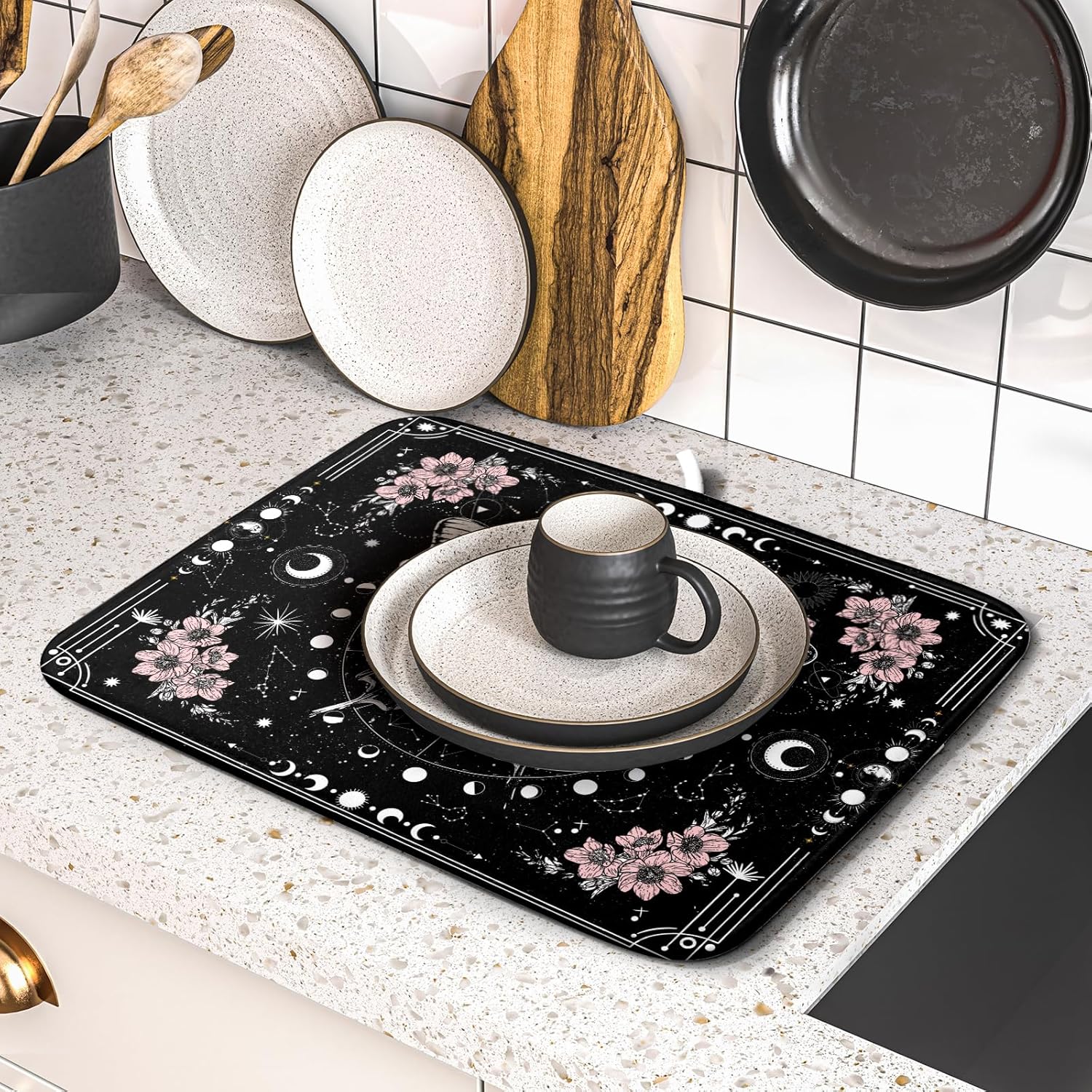 - Super absorbent & protective dish drying pad: high-density microfiber quickly dries dishes, cups, and cookware keeping your counter dry and stain-free;0.4” cushioned design protects countertops from scratches, while grip-bottom prevents slips