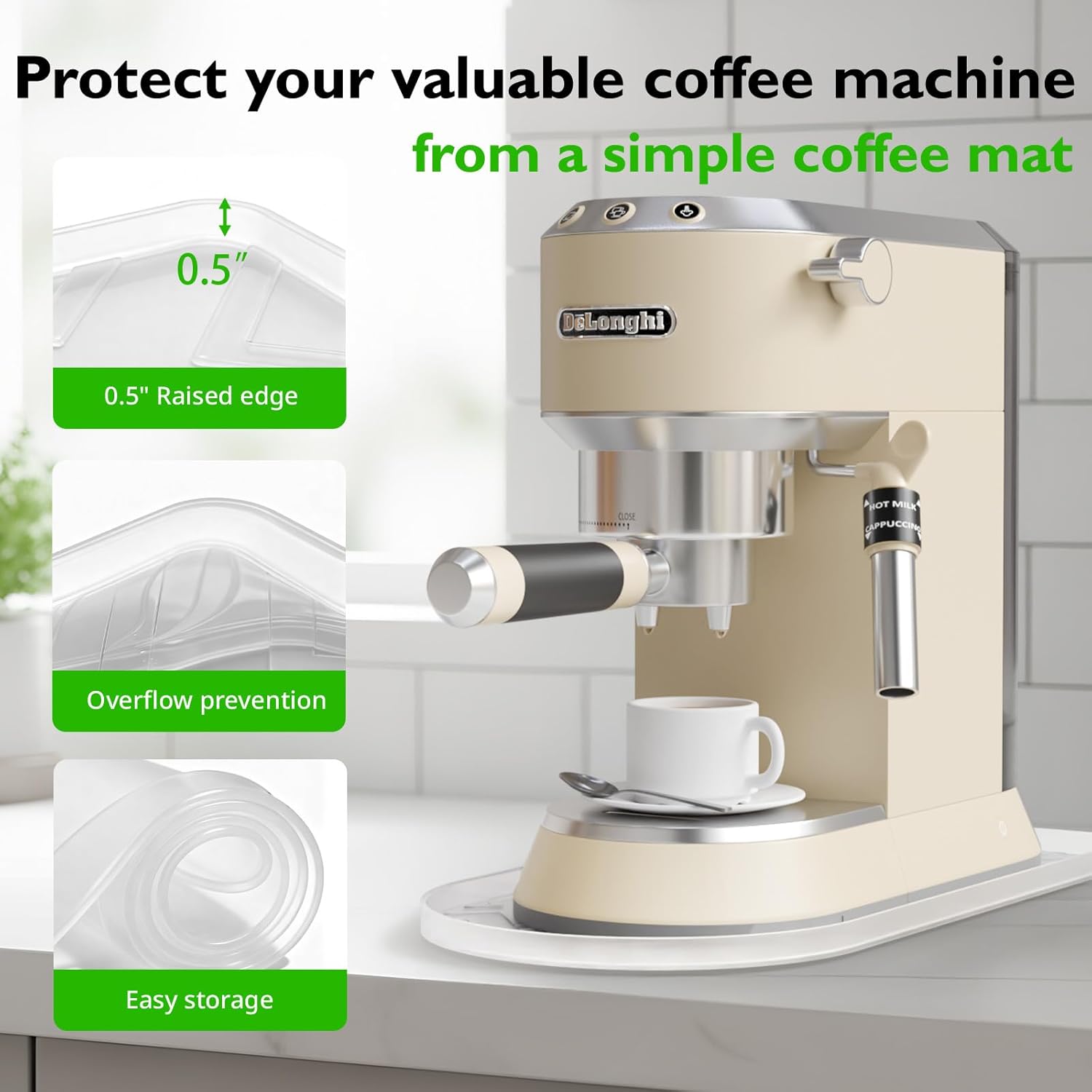 - Precise Arc Design for Perfect Fit:Tailored to match the curved base of most coffee machines, this silicone coffee mat fits snugly without slipping or shifting. It fully covers the contact area, preventing scratches on your countertop while keeping the coffee machine stable during use