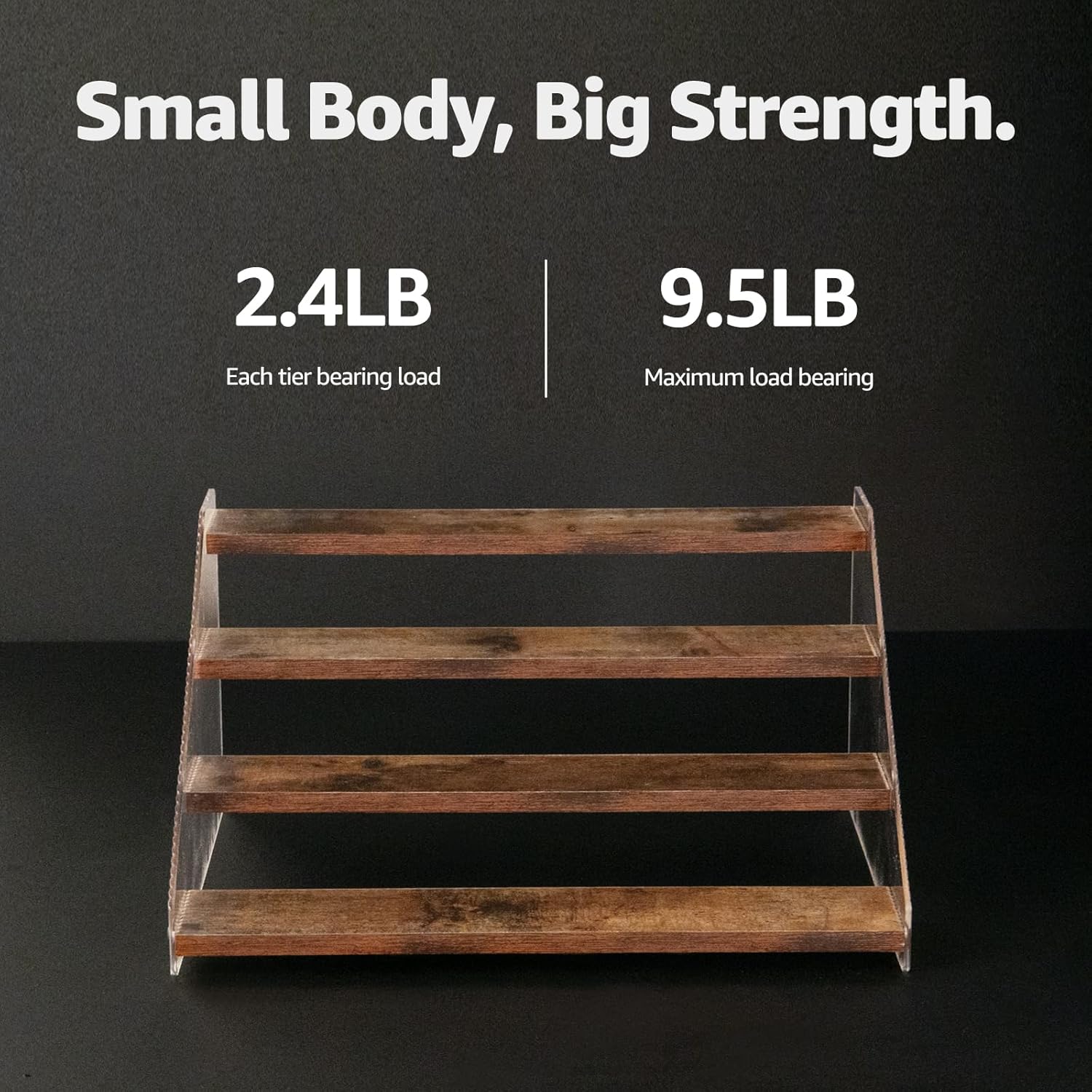 - Elegant & Sturdy: Risers display stands constructed from high-quality pine wood and corrugated acrylic, making it both aesthetically pleasing and fashionable, as well as durable and resistant to deformation, the spice shelf is a beautiful and robust addition to any space